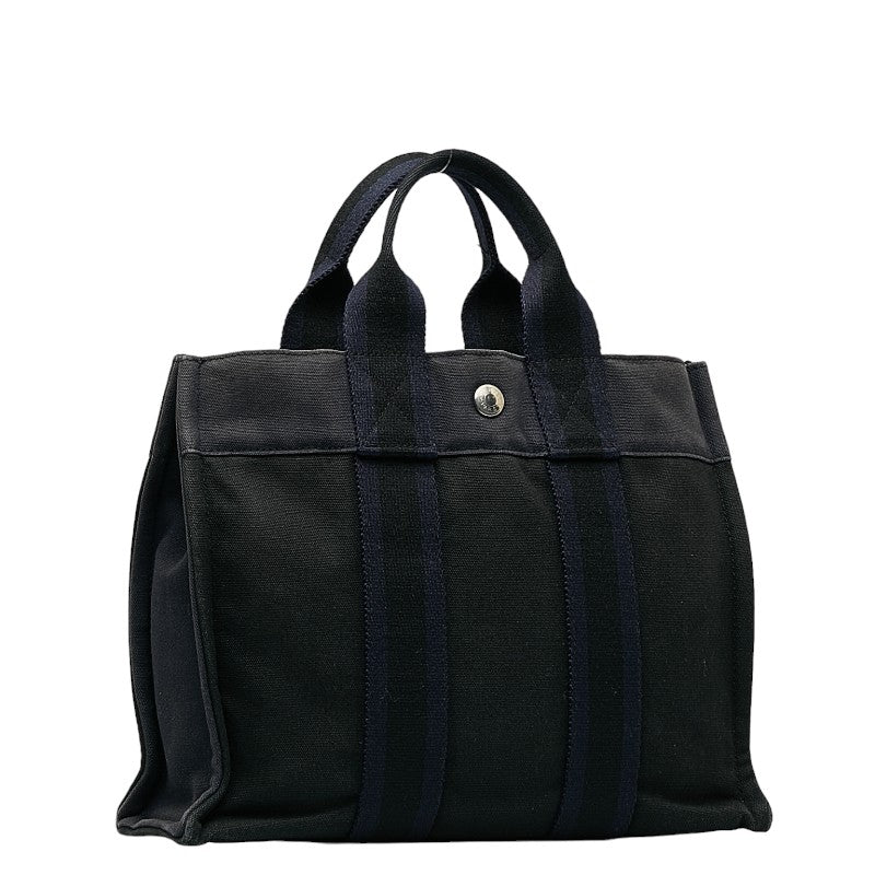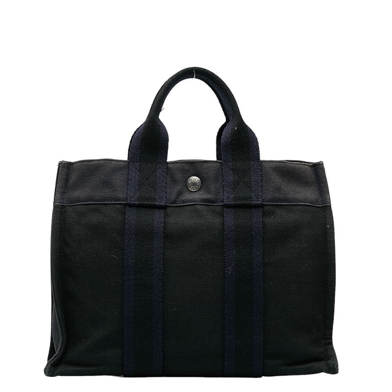 エルメス フールトゥPM ハンドバッグ ブラック ネイビー キャンバス レディース HERMES 【中古】