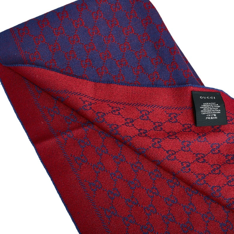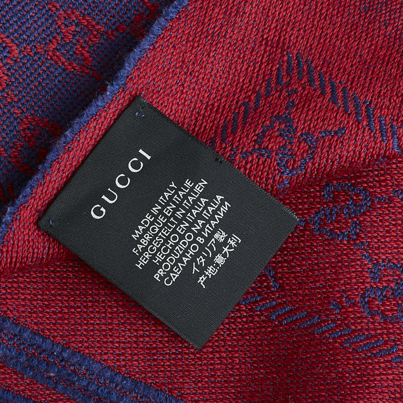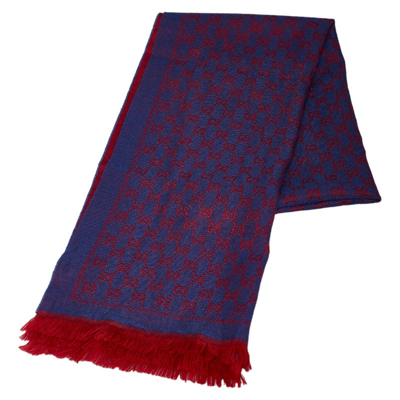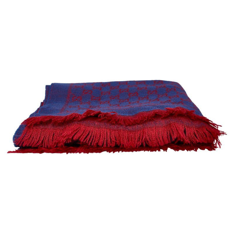 グッチ GGジャガード 総柄 ストール 202253 ブルー レッド ウール レディース GUCCI 【中古】