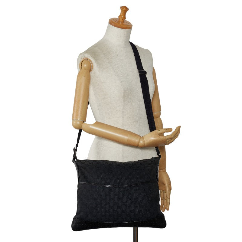 グッチ GGキャンバス 斜め掛け ショルダーバッグ 145856 ブラック キャンバス レザー レディース GUCCI 【中古】