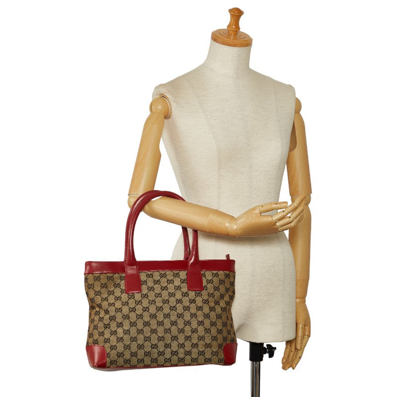 グッチ GGキャンバス ハンドバッグ 002 1119 204961 ベージュ レッド キャンバス レザー レディース GUCCI 【中古】