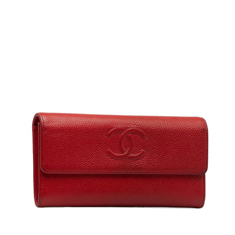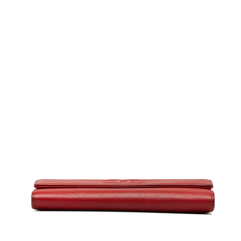 シャネル ココマーク 長財布 レッド キャビアスキン レディース CHANEL 【中古】
