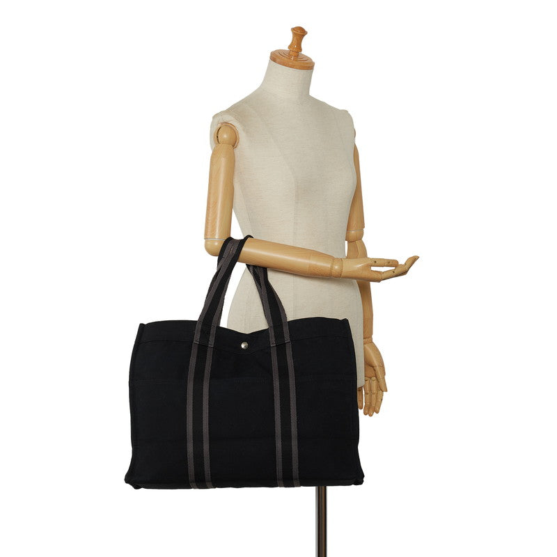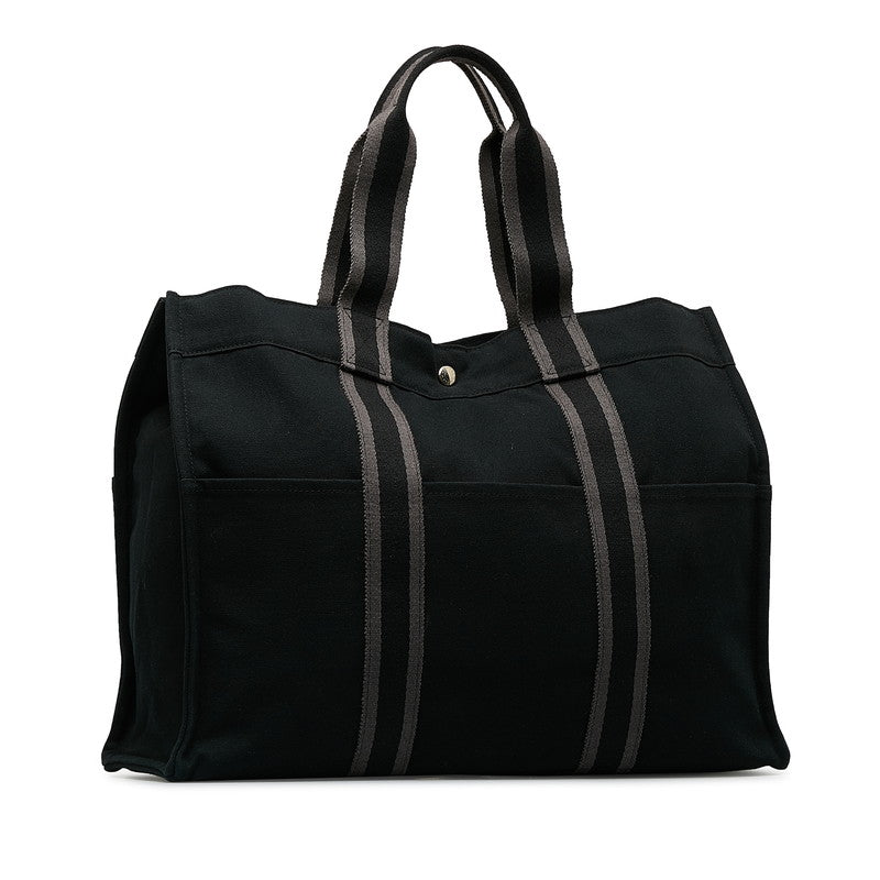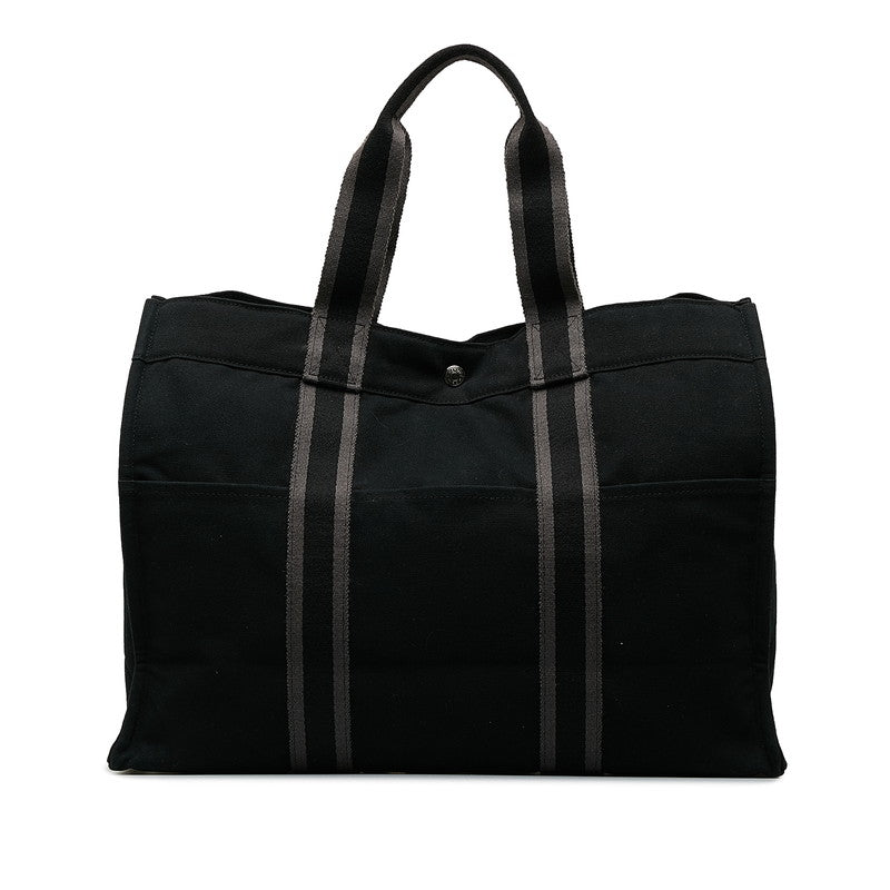 エルメス フールトゥGM ハンドバッグ トートバッグ ブラック グレー コットンキャンバス レディース HERMES 【中古】