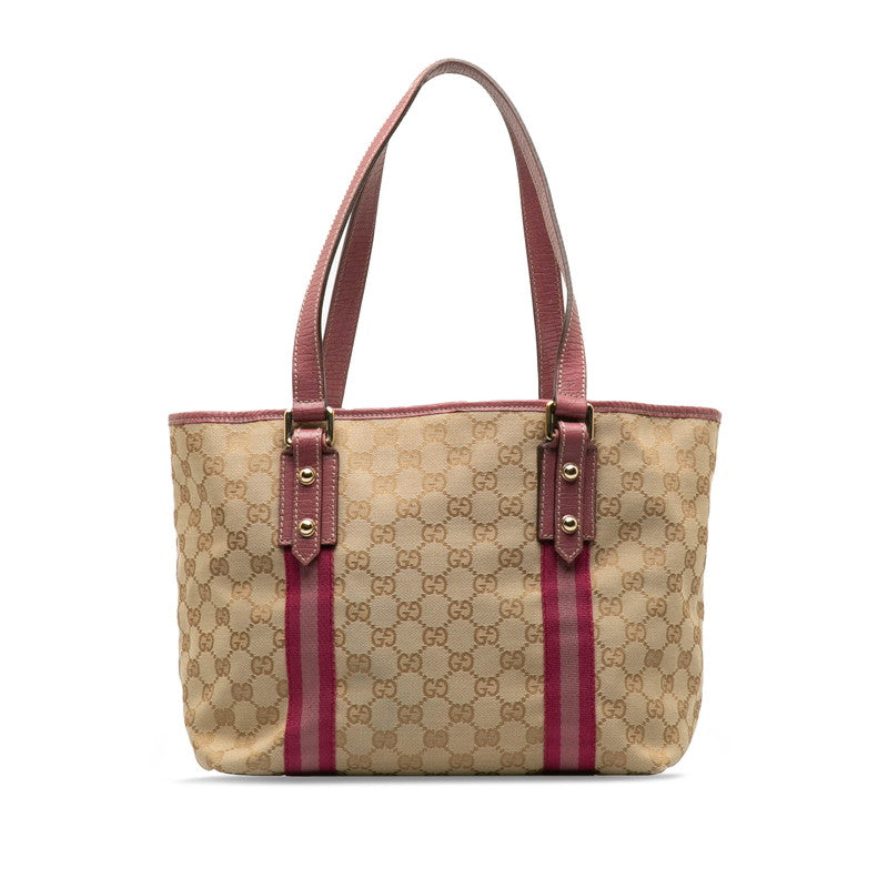 グッチ GGキャンバス トートバッグ 137396 ベージュ ピンク キャンバス レザー レディース GUCCI 【中古】