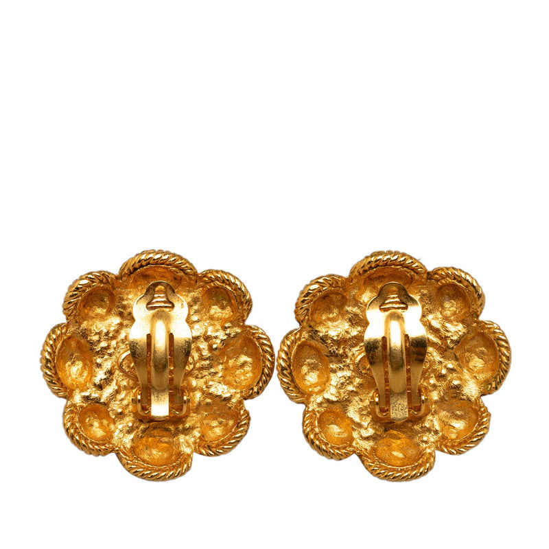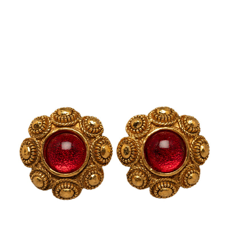 シャネル カラーストーン フラワー モチーフ イヤリング ゴールド レッド メッキ 樹脂系 レディース CHANEL 【中古】
