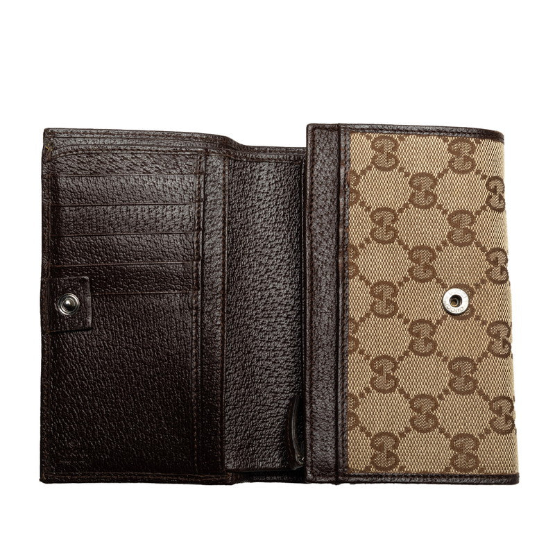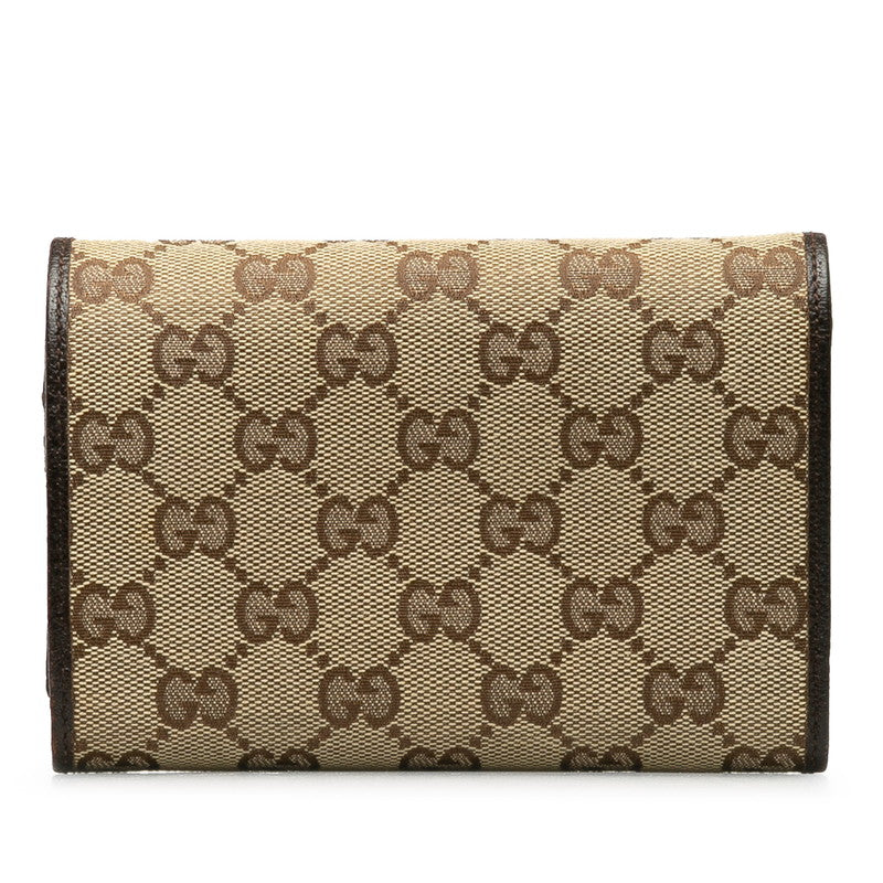 グッチ GGキャンバス 二つ折り財布 154258 ベージュ ブラウン キャンバス レザー レディース GUCCI 【中古】