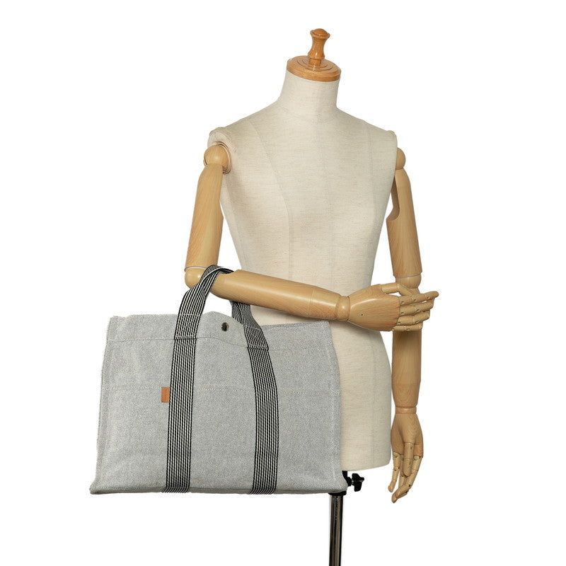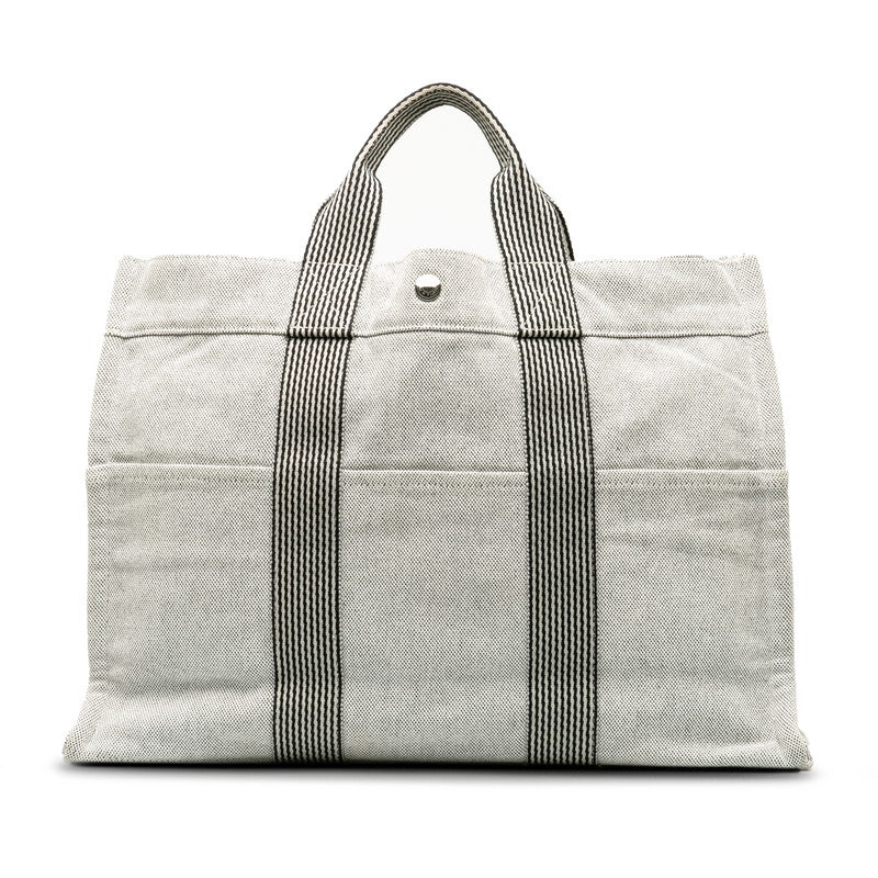 エルメス ニューフールトゥMM ハンドバッグ トートバッグ ホワイト ブラック トワルアッシュ レディース HERMES 【中古】