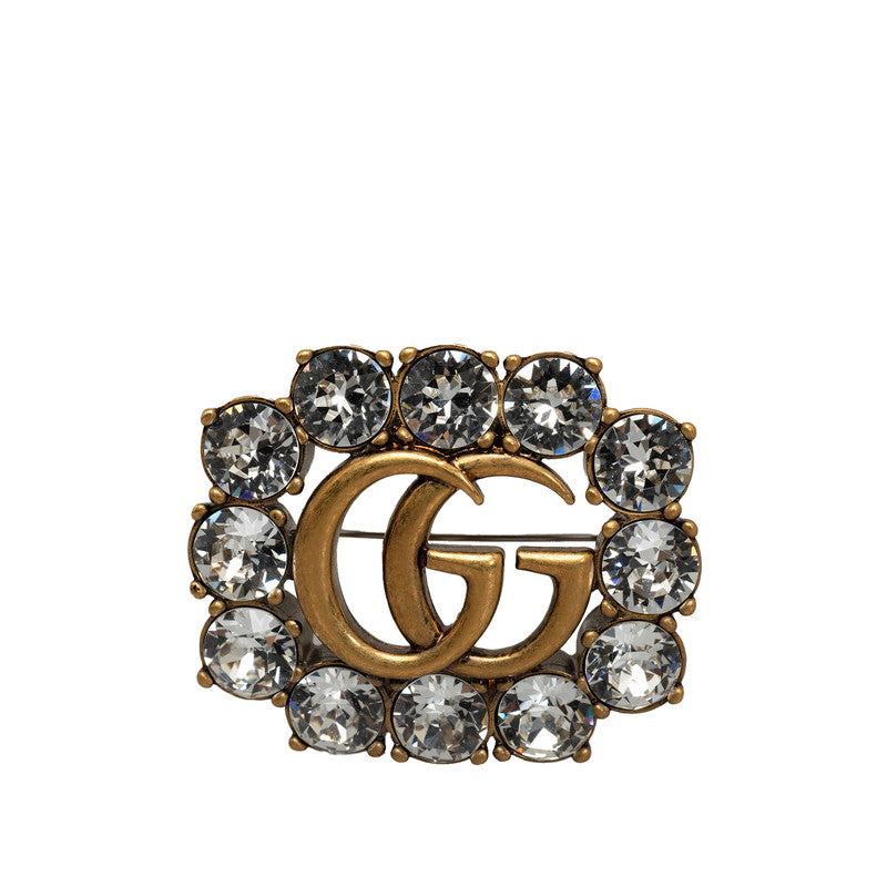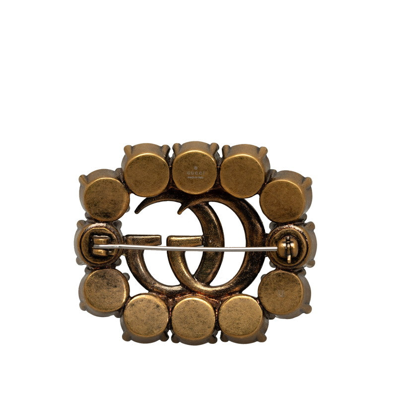 グッチ GGマーモント ラインストーン ブローチ ゴールド メッキ レディース GUCCI 【中古】