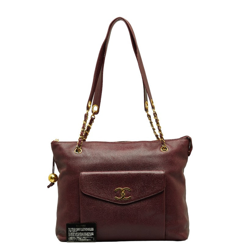 シャネル ココマーク トートバッグ 肩掛けショルダーバッグ ワインレッド キャビアスキン レディース CHANEL 【中古】