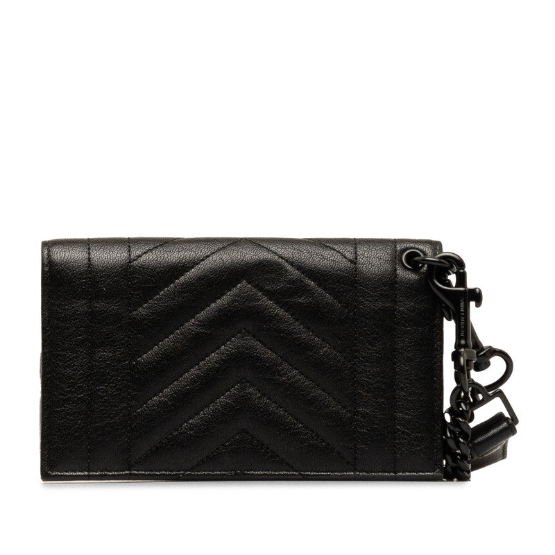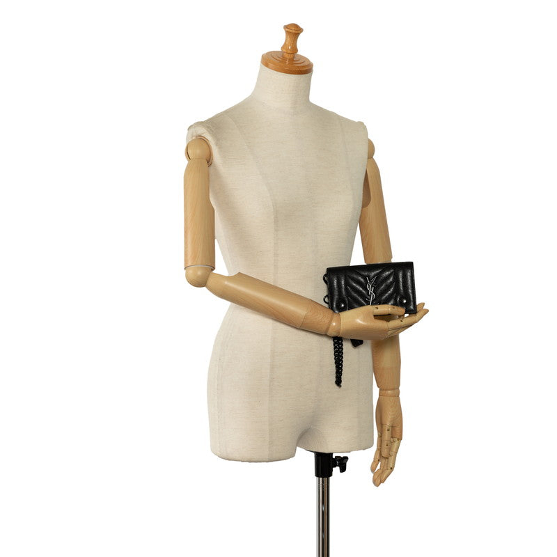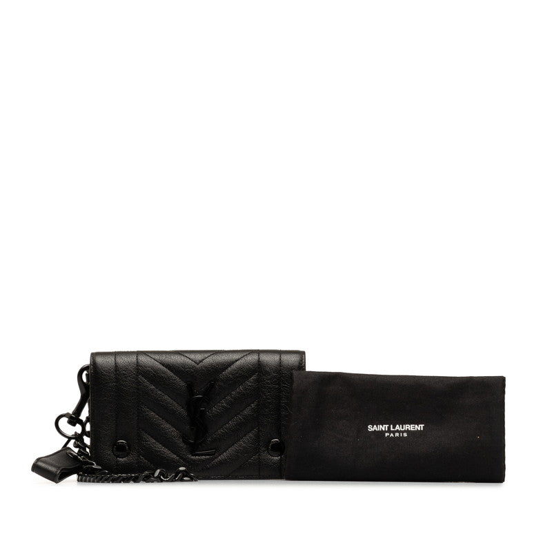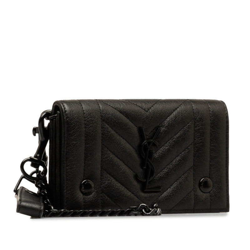 サンローラン YSL Vステッチ ショルダーバッグ チェーンウォレット ブラック レザー レディース SAINT LAURENT 【中古】