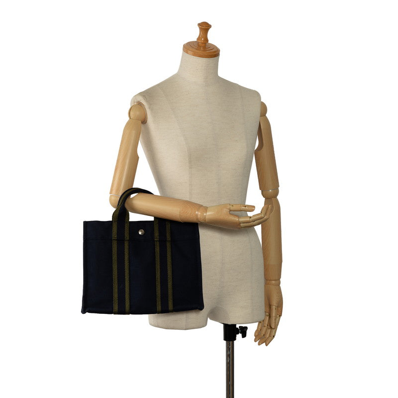 エルメス フールトゥ PM ハンドバッグ トートバッグ ネイビー グリーン キャンバス レディース HERMES 【中古】