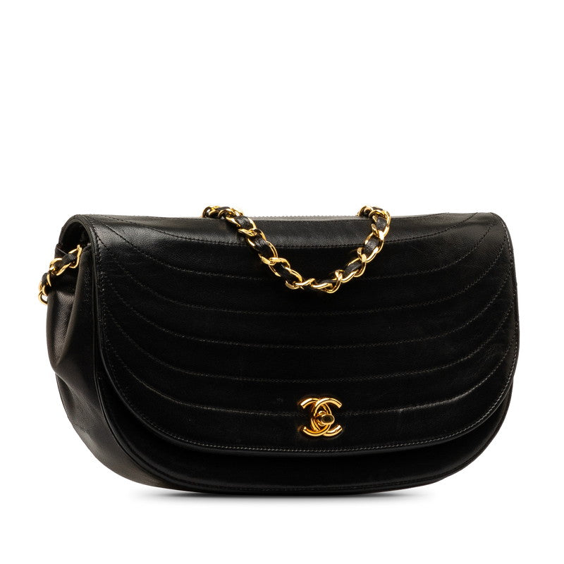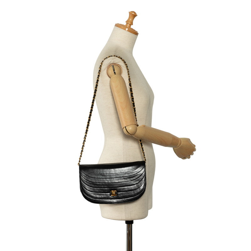 シャネル ココマーク ハーフムーン チェーン ショルダーバッグ ブラック ラムスキン レディース CHANEL 【中古】