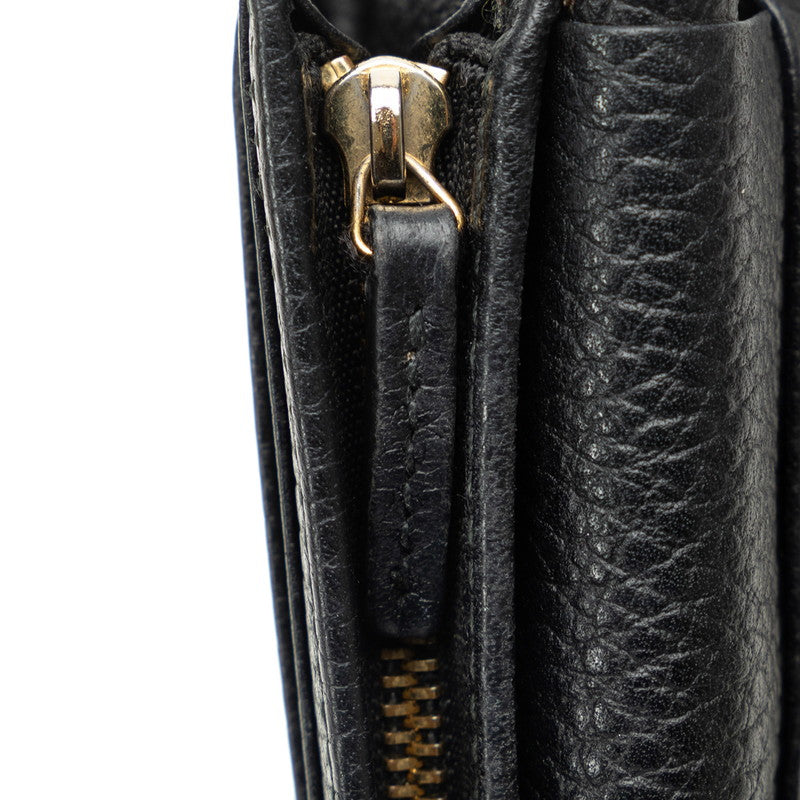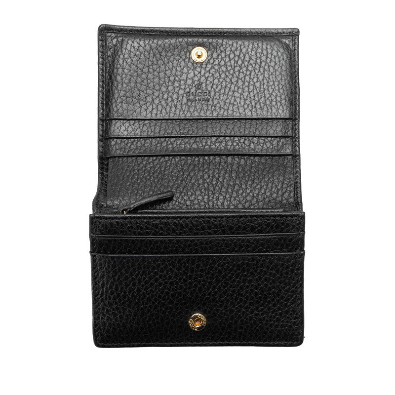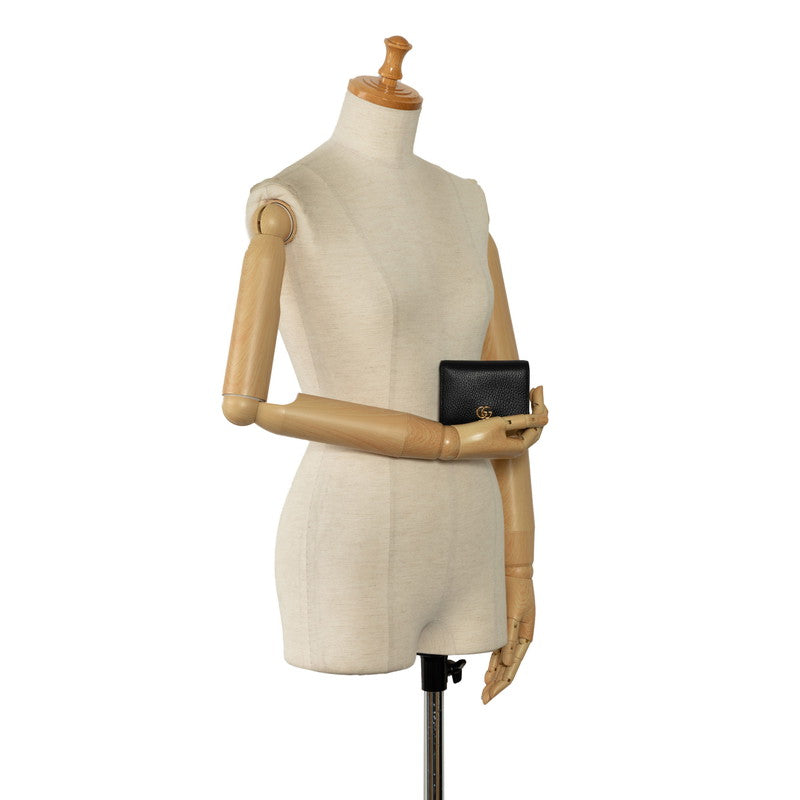 グッチ GGマーモント 二つ折り財布 コンパクトウォレット 456126 ブラック ゴールド レザー レディース GUCCI 【中古】