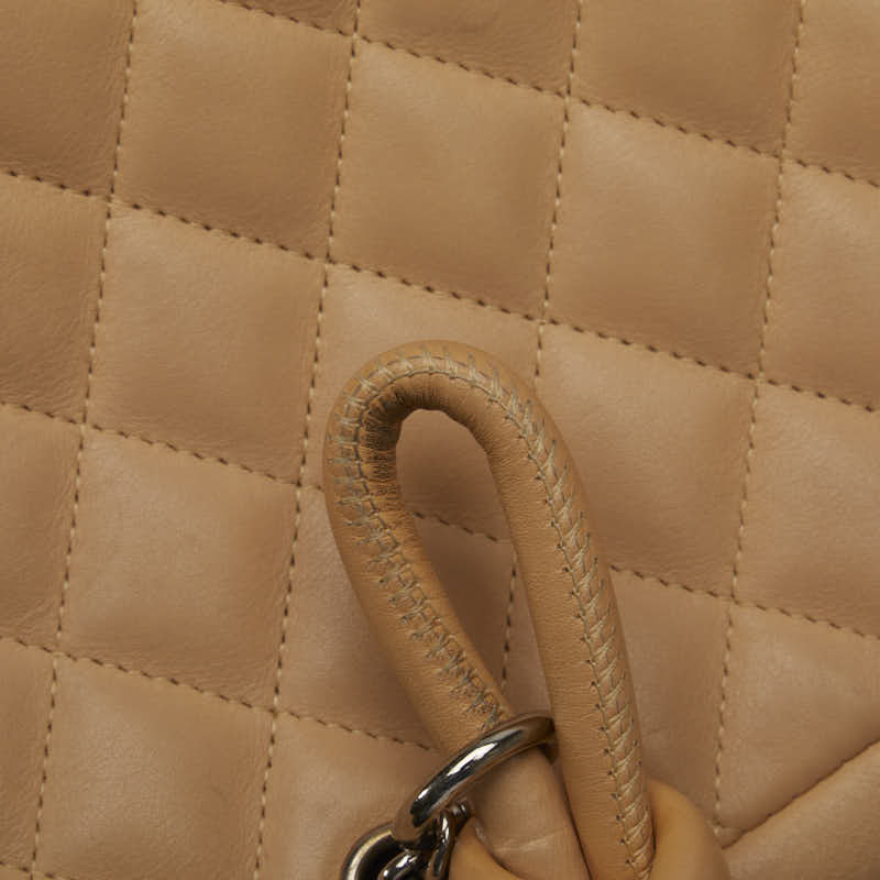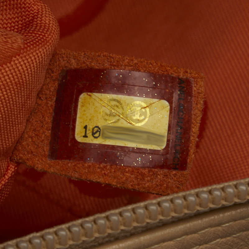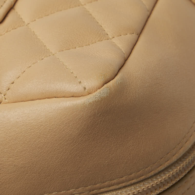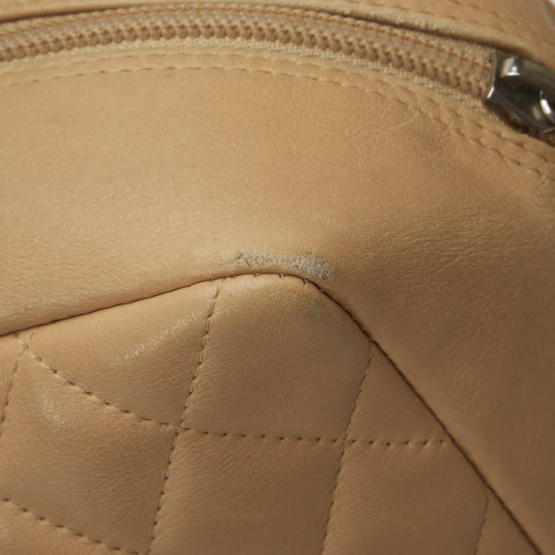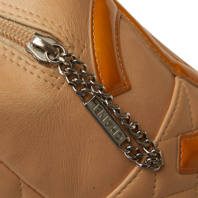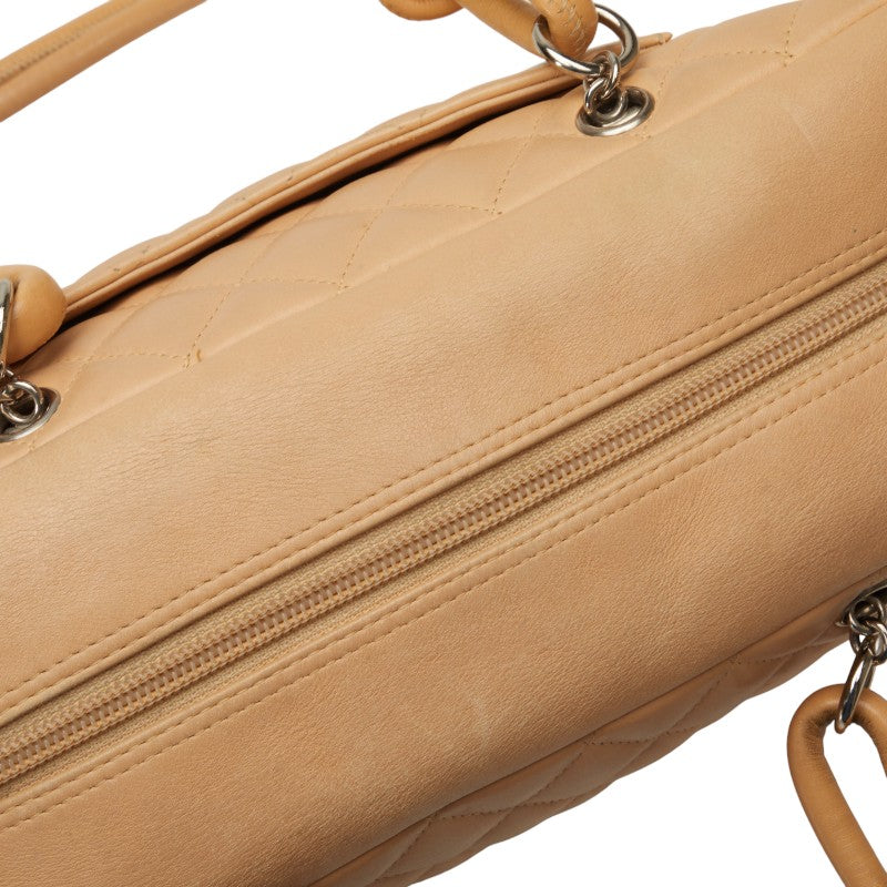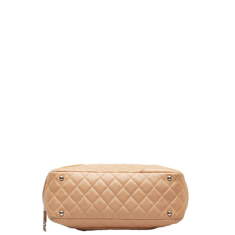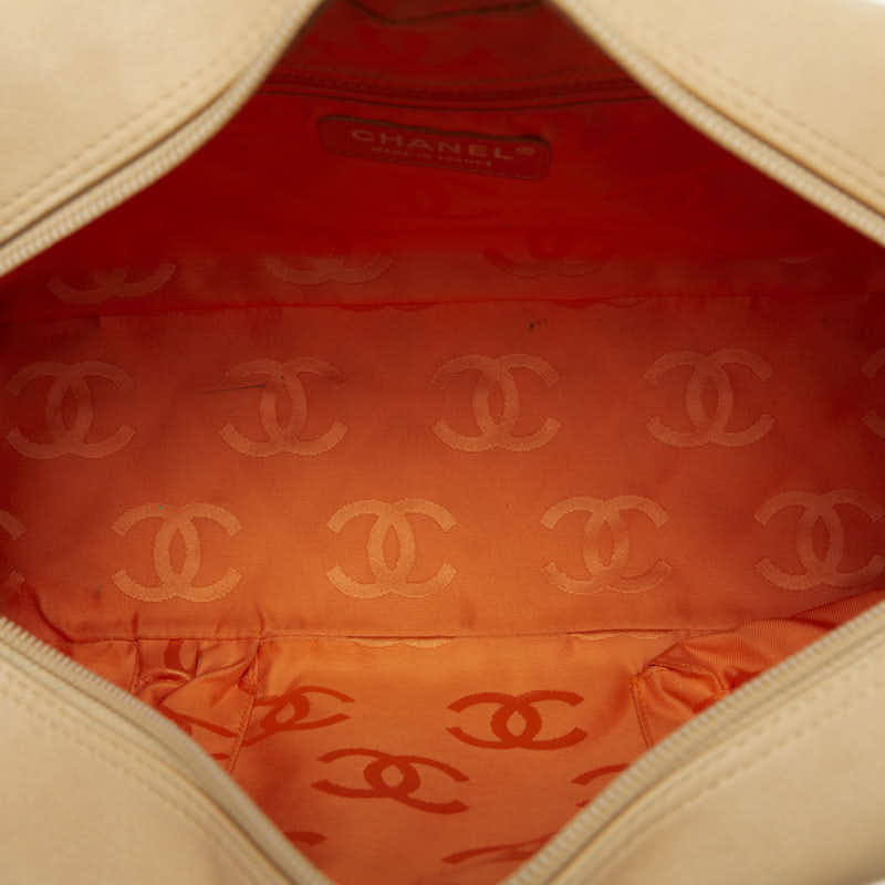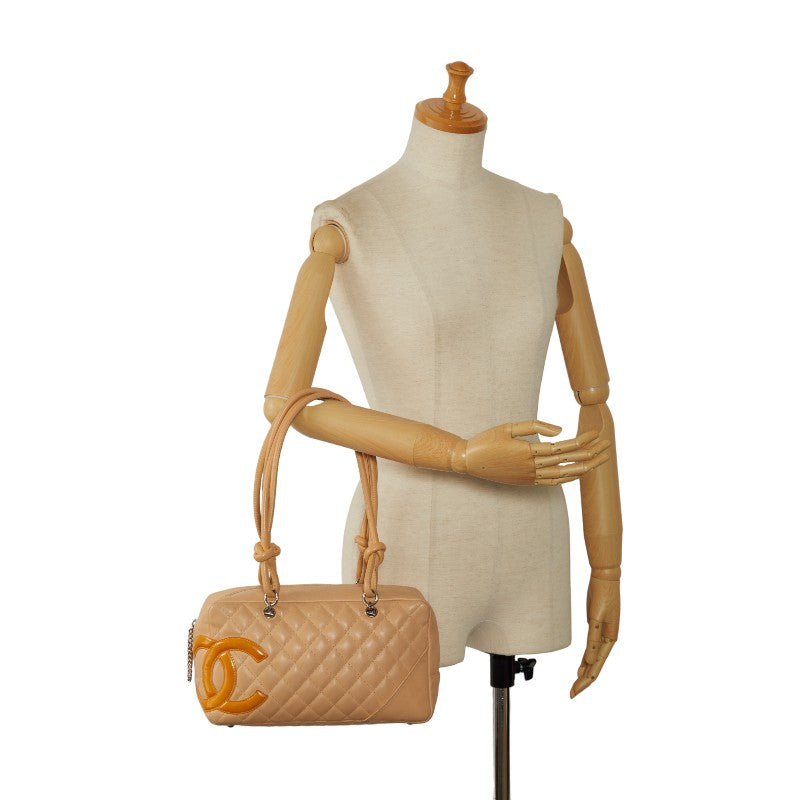 シャネル カンボン ココマーク ボーリングバッグ ハンドバッグ ベージュ オレンジ ラムスキン レディース CHANEL 【中古】