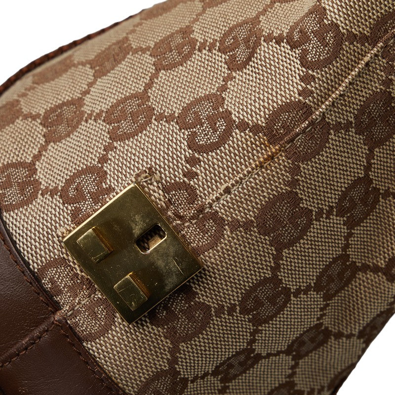 グッチ GGキャンバス ハンドバッグ トートバッグ 92734 ベージュ ブラウン キャンバス レザー レディース GUCCI 【中古】