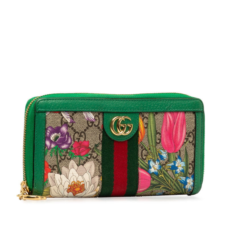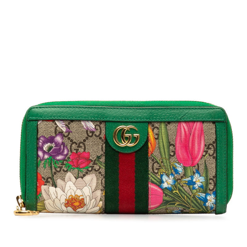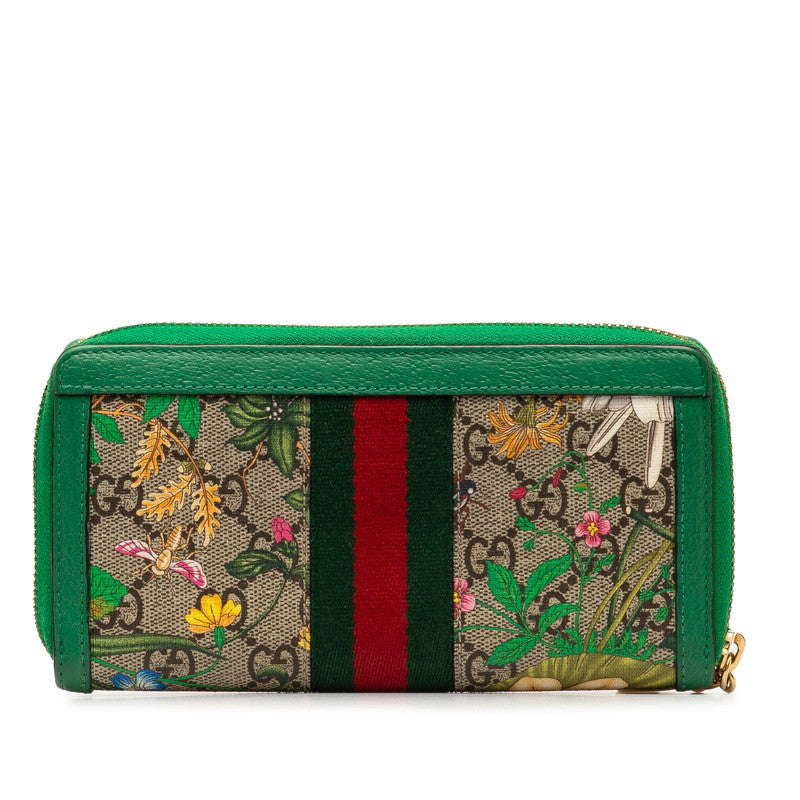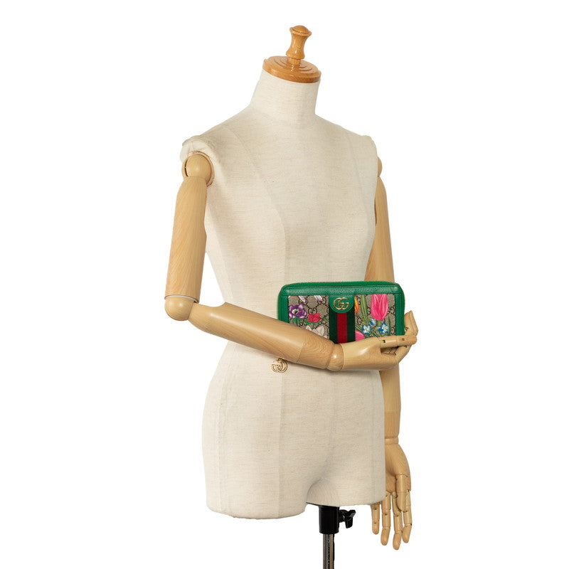グッチ GGスプリーム GGフローラ オフィディア LIMITED EDITION ラウンドファスナー 長財布 523154 グリーン マルチカラー PVC レザー レディース GUCCI 【中古】