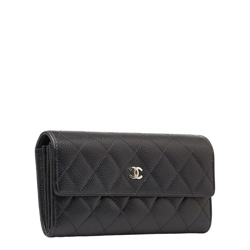シャネル ココマーク マトラッセ 長財布 ブラック キャビアスキン レディース CHANEL 【中古】