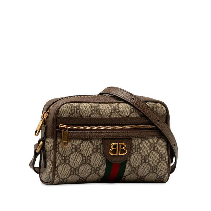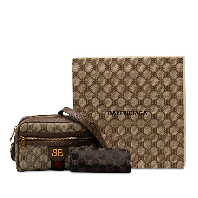 グッチ ×バレンシアガ ザ ハッカープロジェクト GGスプリーム BBロゴ ミニ ショルダーバッグ 680128 ベージュ ブラウン PVC レザー レディース GUCCI 【中古】