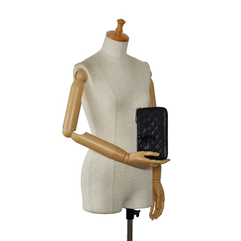シャネル カンボンライン ココマーク ラウンドファスナー 長財布 ブラック レザー レディース CHANEL 【中古】