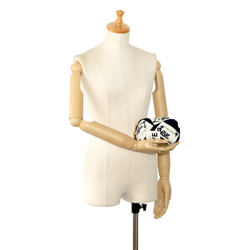 サンローラン YSL LOVE ポーチ ブルー ホワイト キャンバス レディース SAINT LAURENT 【中古】