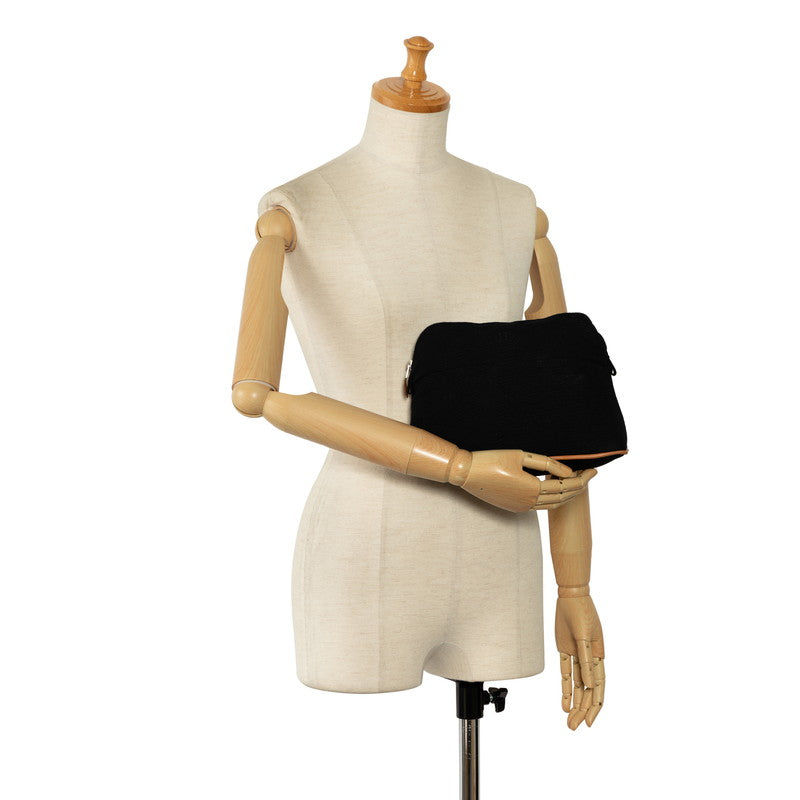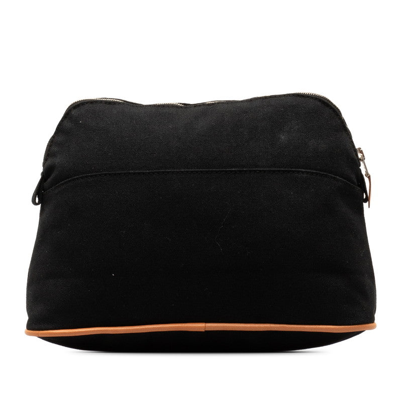 エルメス ボリードポーチMM ハンドバッグ ブラック ブラウン コットン レザー レディース HERMES 【中古】