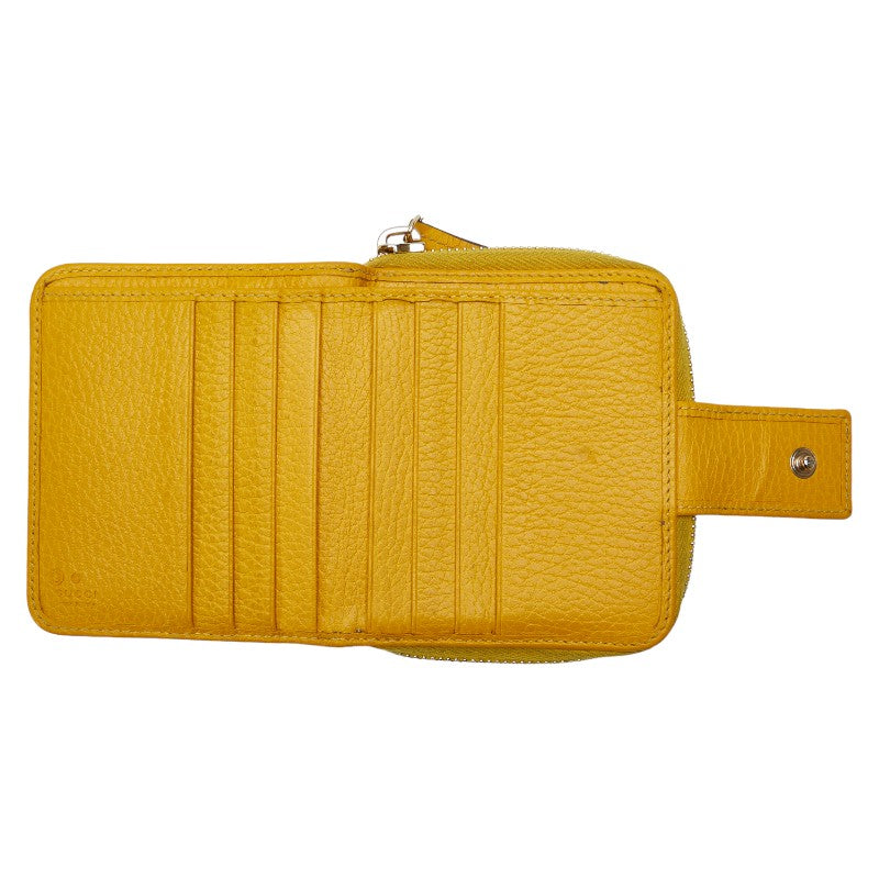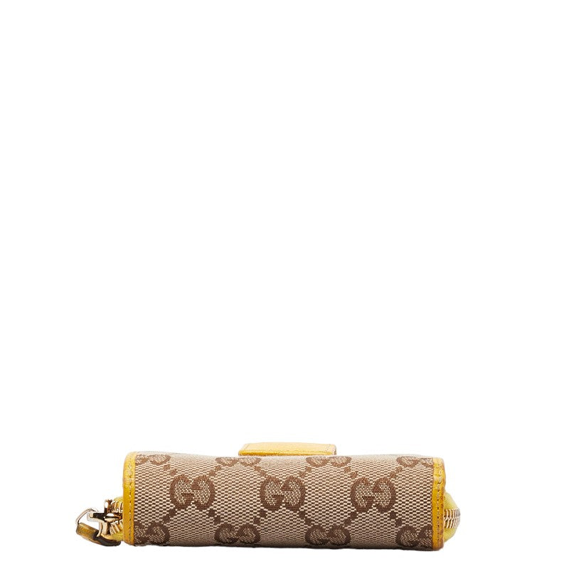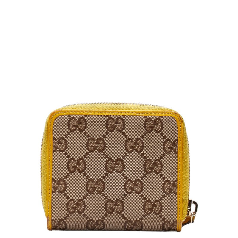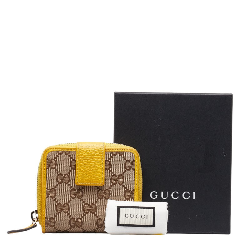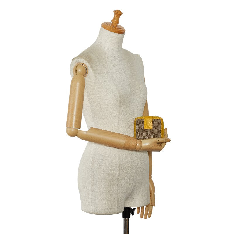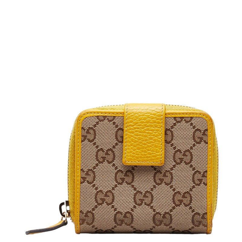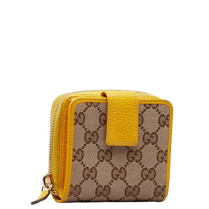 グッチ GGキャンバス 二つ折り財布 ラウンドファウナー コンパクトウォレット 346056 ベージュ イエロー キャンバス レザー レディース GUCCI 【中古】