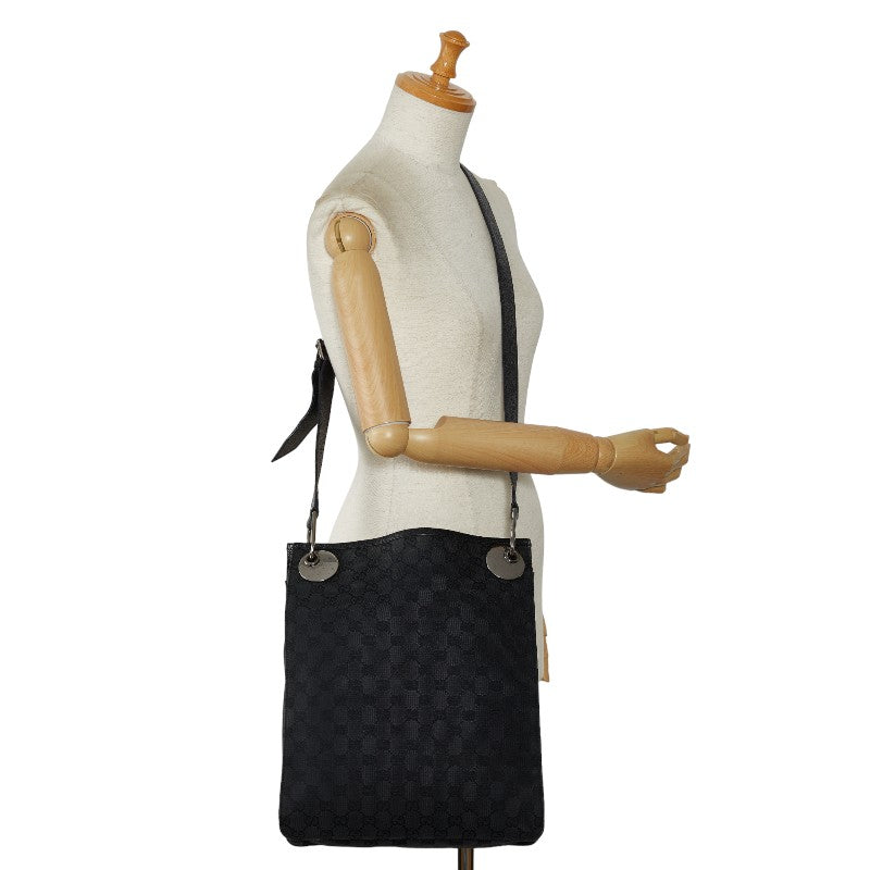 グッチ GGキャンバス 斜め掛け ショルダーバッグ 120842 ブラック キャンバス レザー レディース GUCCI 【中古】