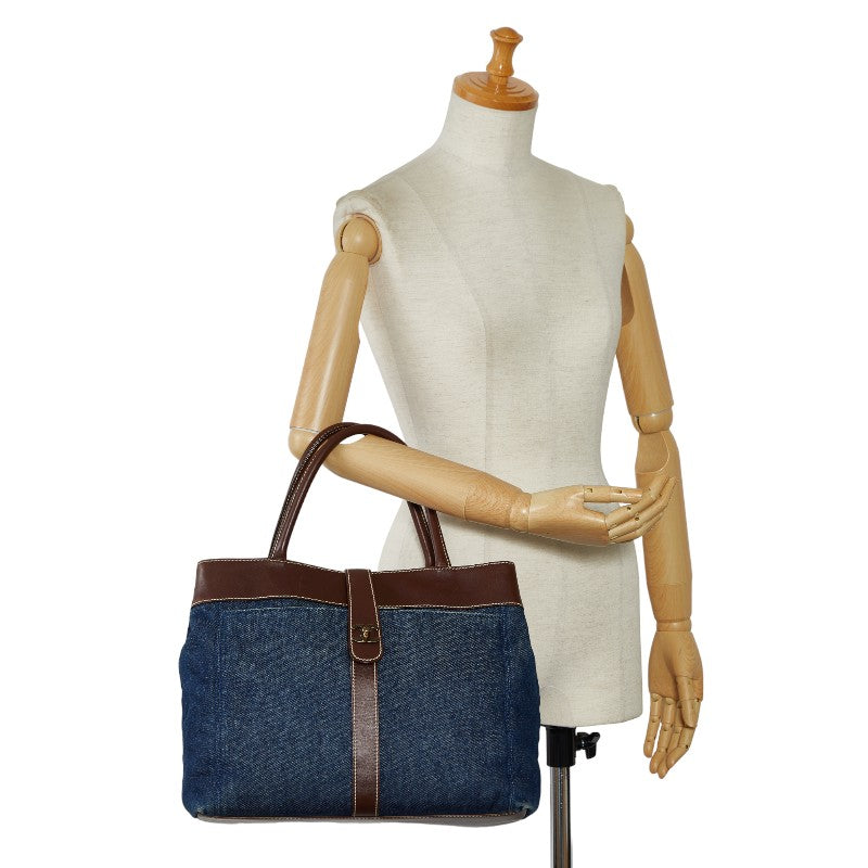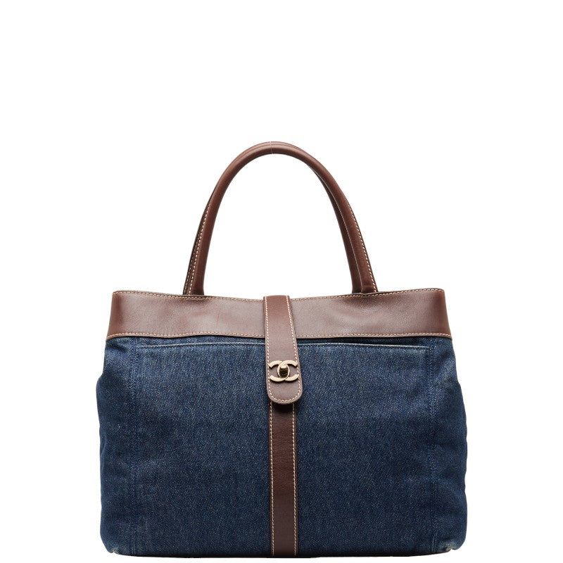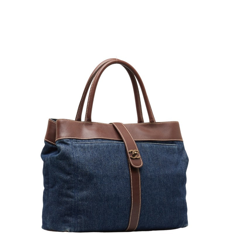 シャネル ココマーク ハンドバッグ トートバッグ ブルー ブラウン デニム レザー レディース CHANEL 【中古】