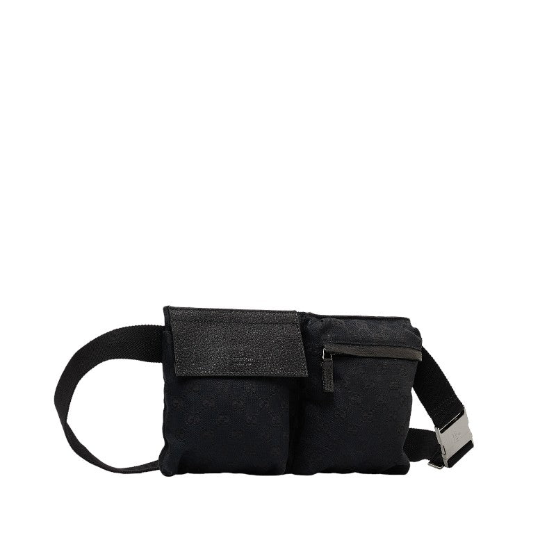 グッチ GGキャンバス ウエストポーチ ボディバッグ 28566 ブラック キャンバス レザー レディース GUCCI 【中古】