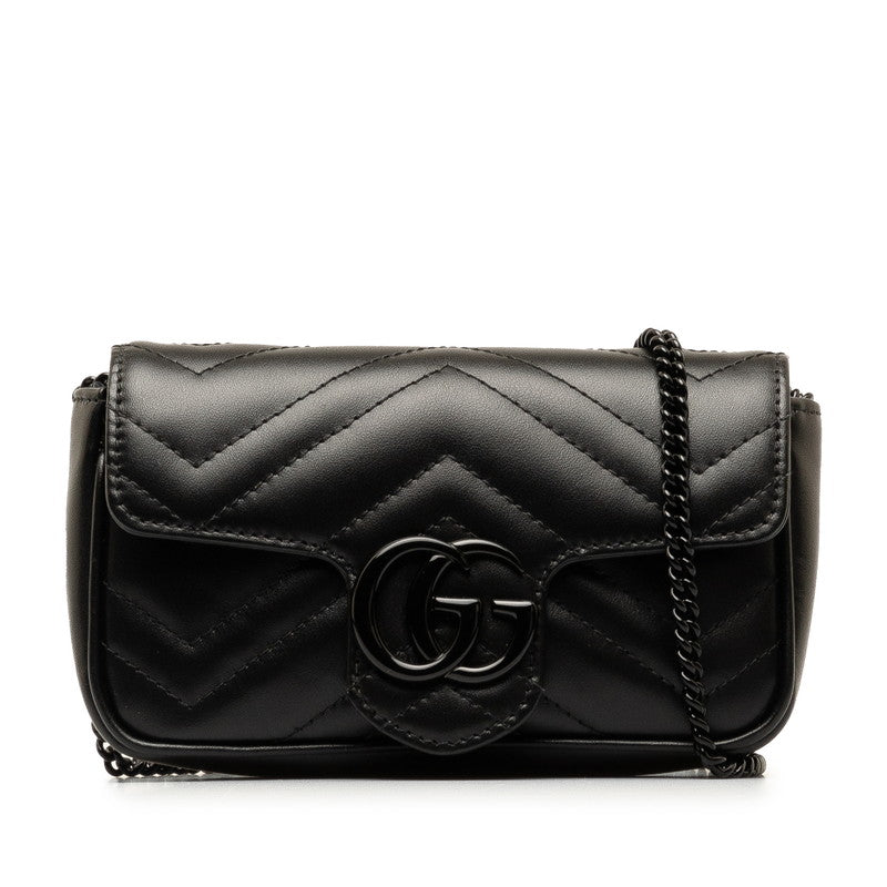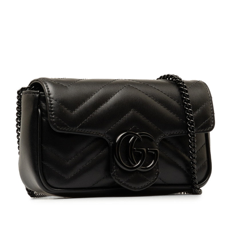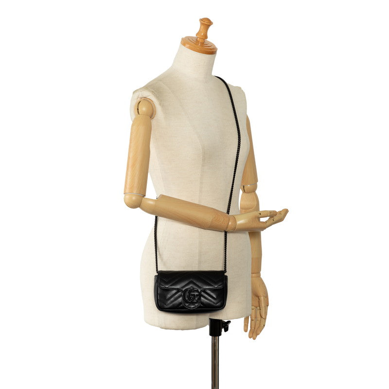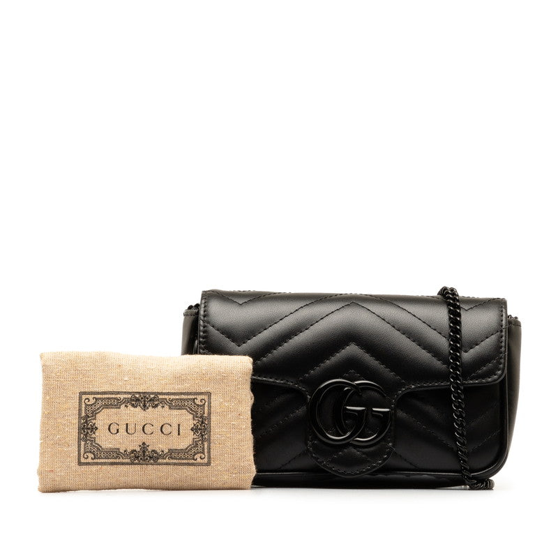 グッチ GGマーモント スーパーミニバッグ キルティングレザー 斜め掛け チェーン ショルダーバッグ 476433 ブラック レザー レディース GUCCI 【中古】