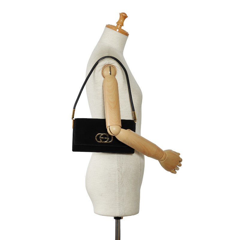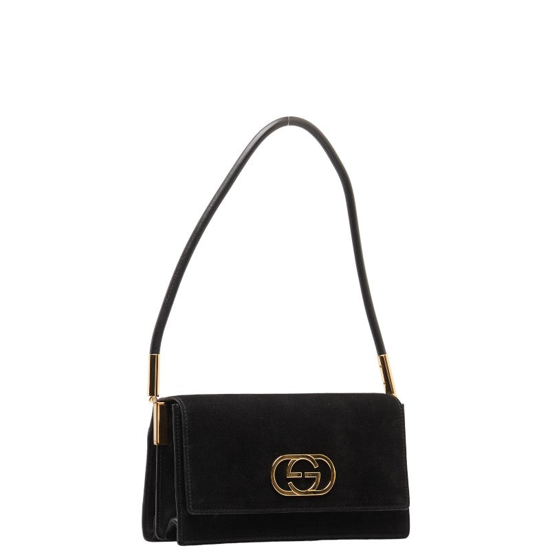 グッチ GG柄 ワンショルダーバッグ ハンドバッグ 0013815 ブラック ゴールド スウェード レザー レディース GUCCI 【中古】