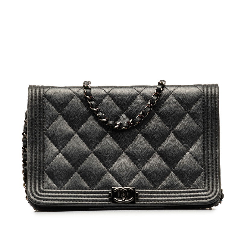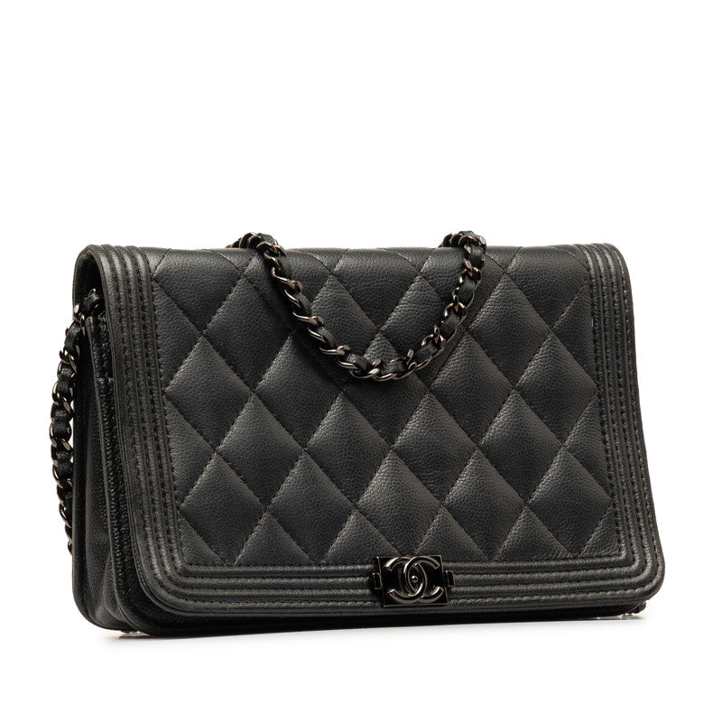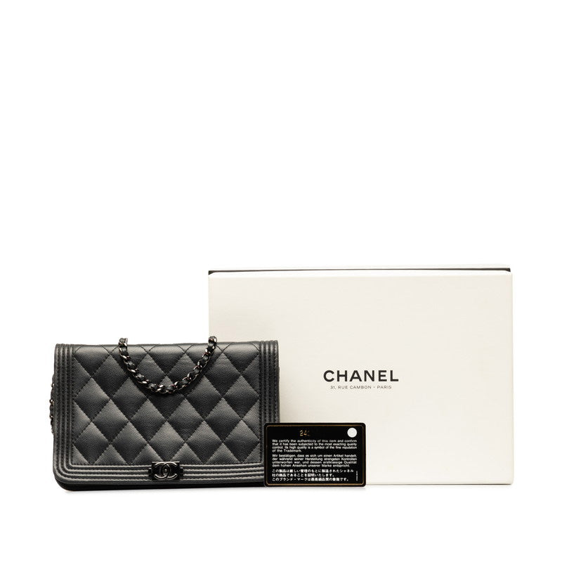 シャネル ココマーク ボーイシャネル ソーブラック チェーン ショルダーバッグ ブラック マットキャビアスキン レディース CHANEL 【中古】