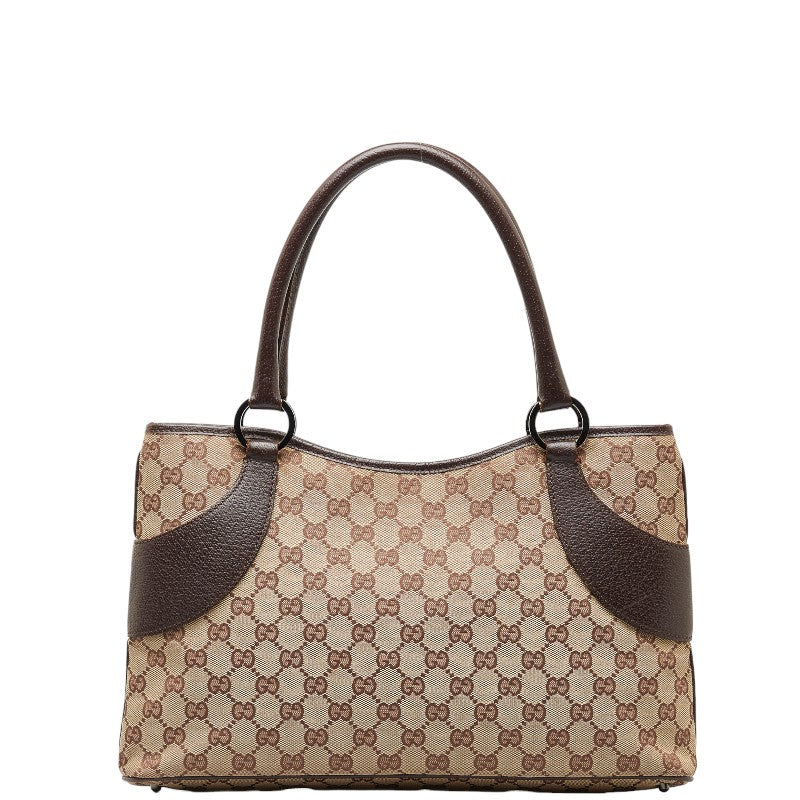 グッチ GGキャンバス トートバッグ ハンドバッグ 113015 ブラウン ベージュ キャンバス レザー レディース GUCCI 【中古】