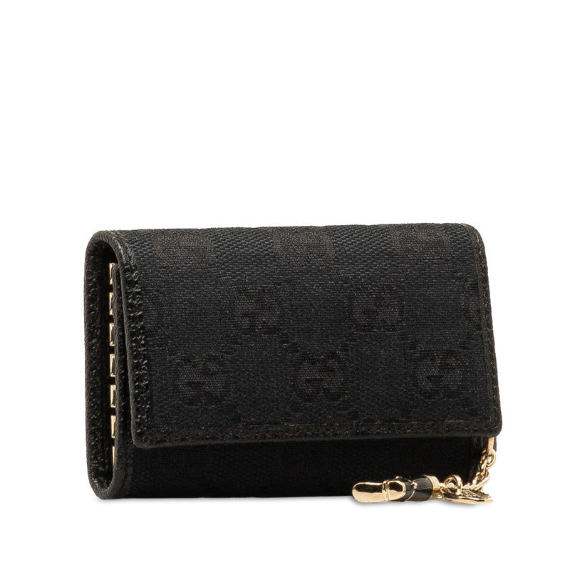グッチ GGキャンバス キーケース 6連 154184 ブラック キャンバス レザー レディース GUCCI 【中古】