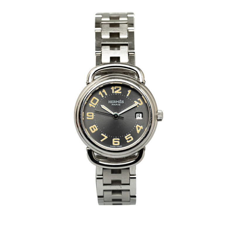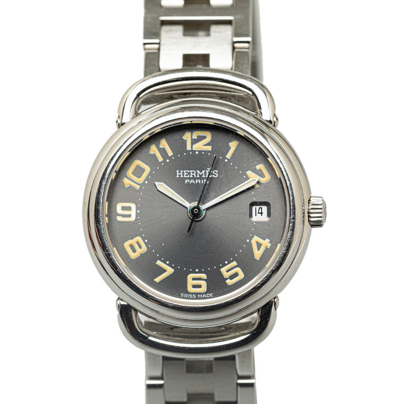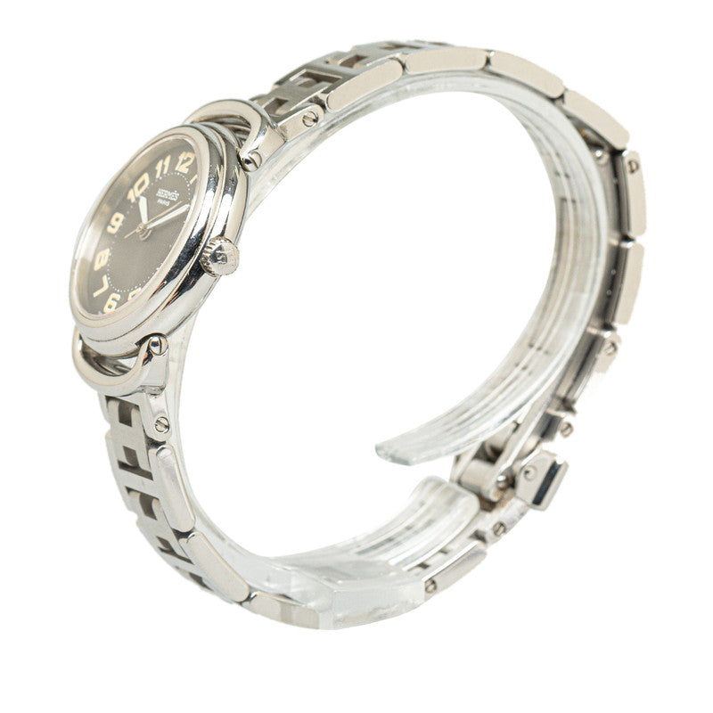 エルメス プルマン 腕時計 クオーツ ブラック文字盤 ステンレススチール レディース HERMES 【中古】