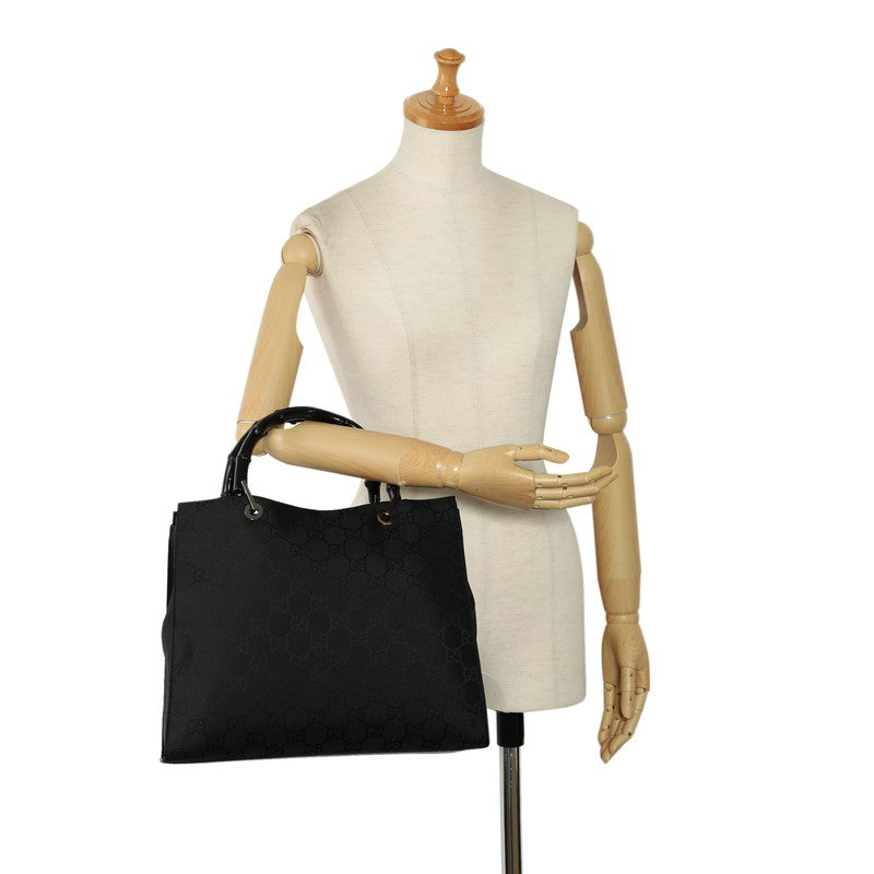グッチ GGナイロン バンブー ハンドバッグ トートバッグ 002 1010 ブラック ナイロン レザー レディース GUCCI 【中古】