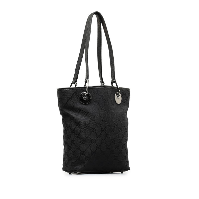 グッチ GGキャンバス トートバッグ 120840 ブラック キャンバス レザー レディース GUCCI 【中古】