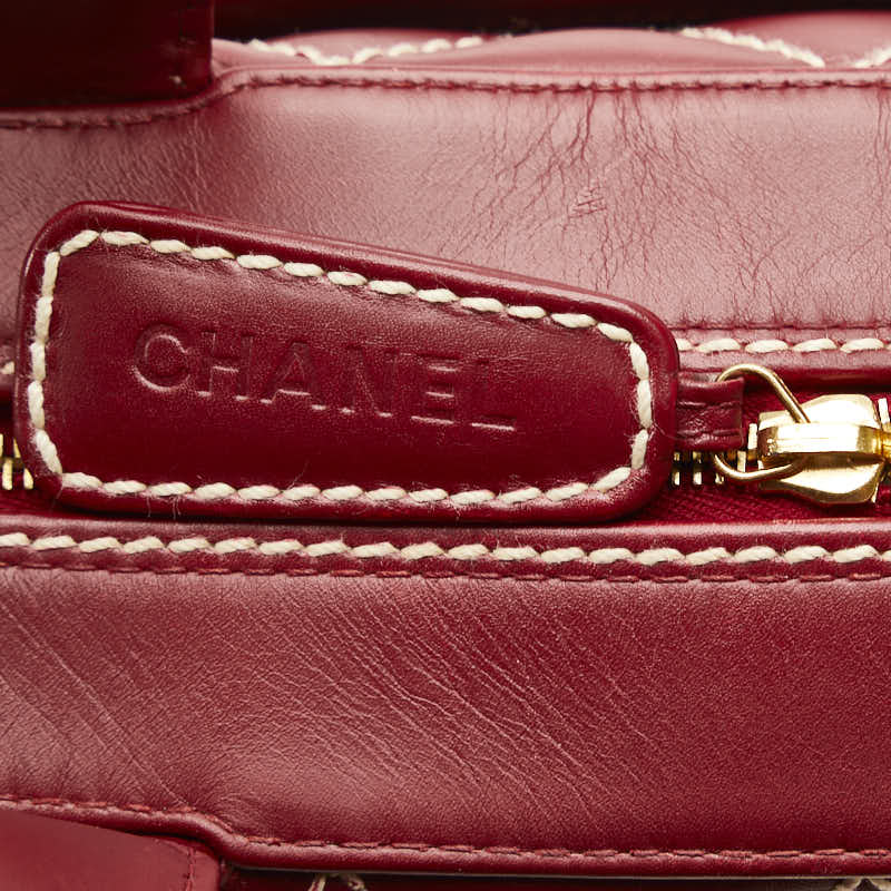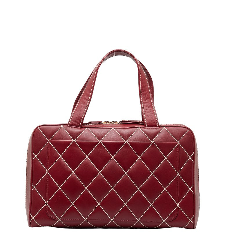 シャネル ココマーク ワイルドステッチ ハンドバッグ ミニボストンバッグ レッド ラムスキン レディース CHANEL 【中古】