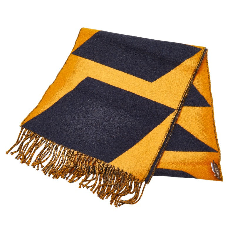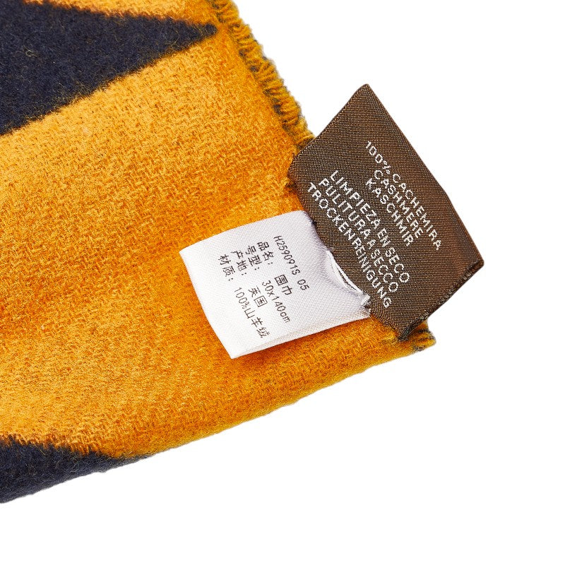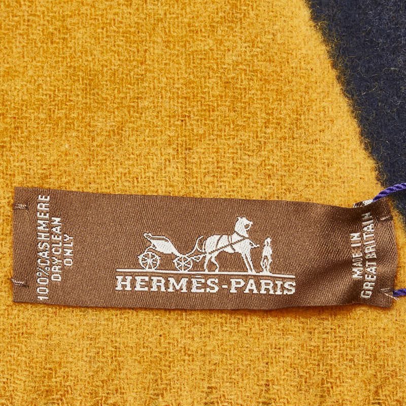 エルメス マフラー イエロー ネイビー カシミヤ レディース HERMES 【中古】