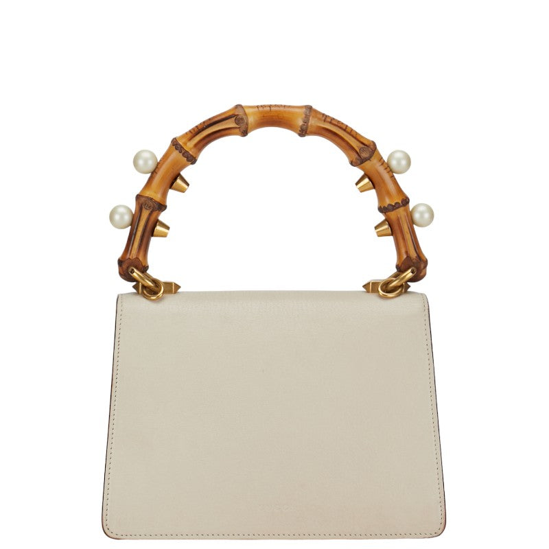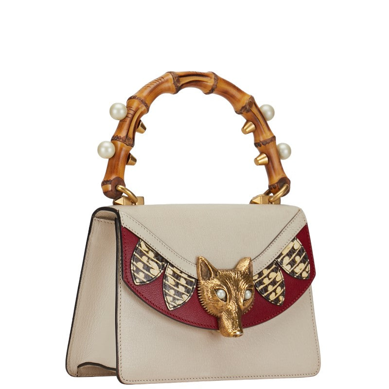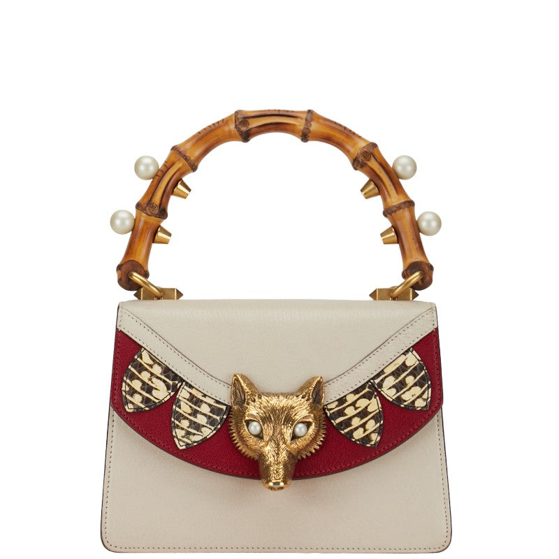 グッチ バンブー フォックスヘッド ハンドバッグ 466432 ホワイト レッド カーフ レザー レディース GUCCI 【中古】