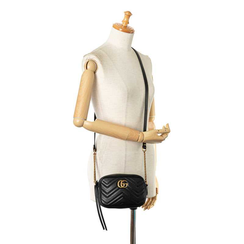 グッチ GGマーモント キルティング 斜め掛け チェーン ショルダーバッグ 448065 ブラック レザー レディース GUCCI 【中古】
