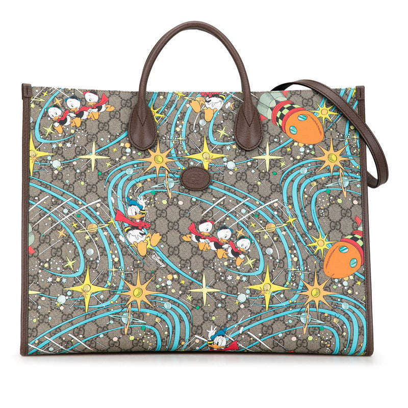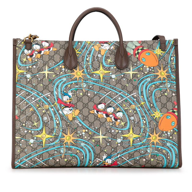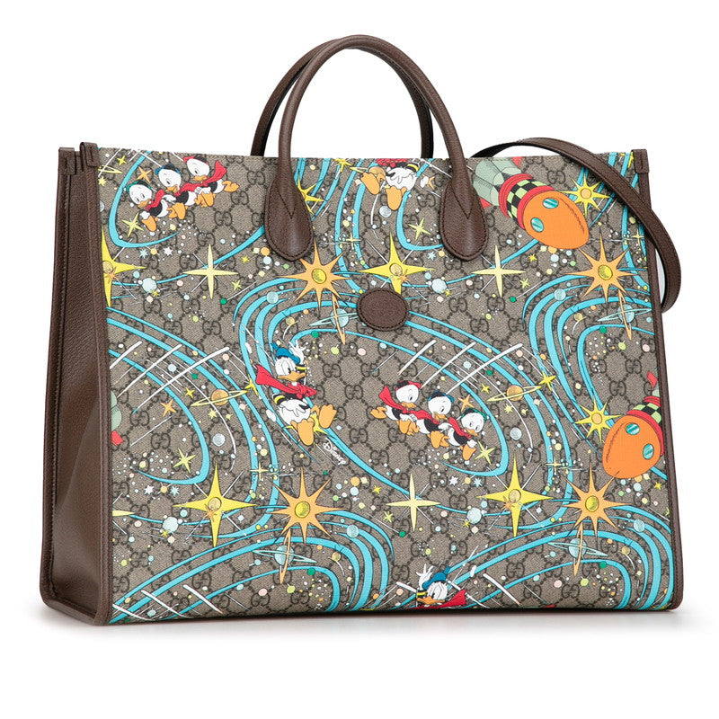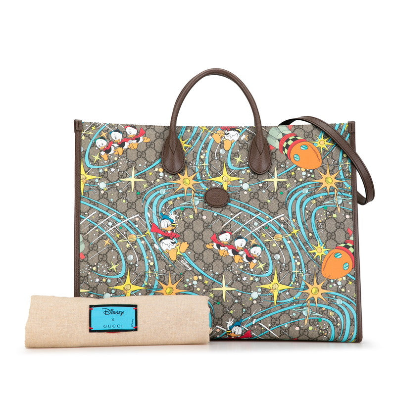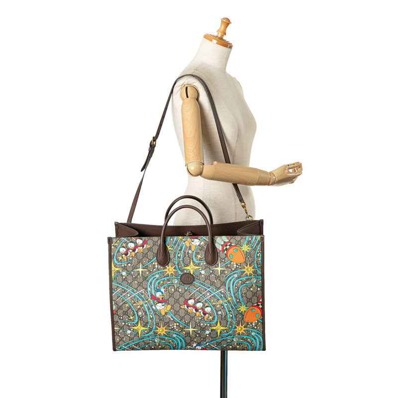 グッチ ×ディズニー GGスプリーム ドナルドダック トートバッグ ショルダーバッグ 2WAY 650037 ブラウン マルチカラー PVC レザー レディース GUCCI 【中古】