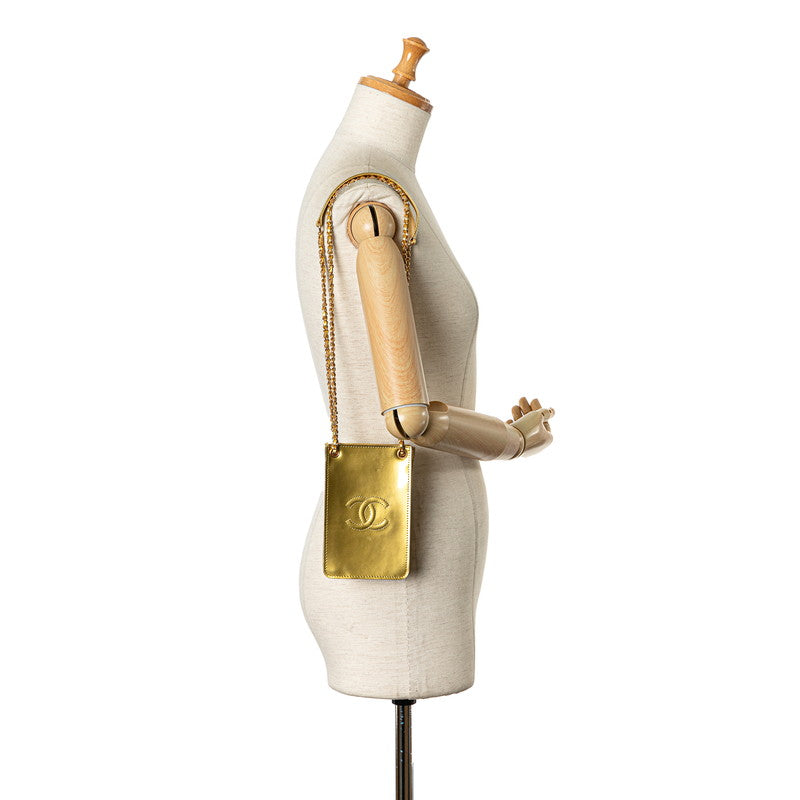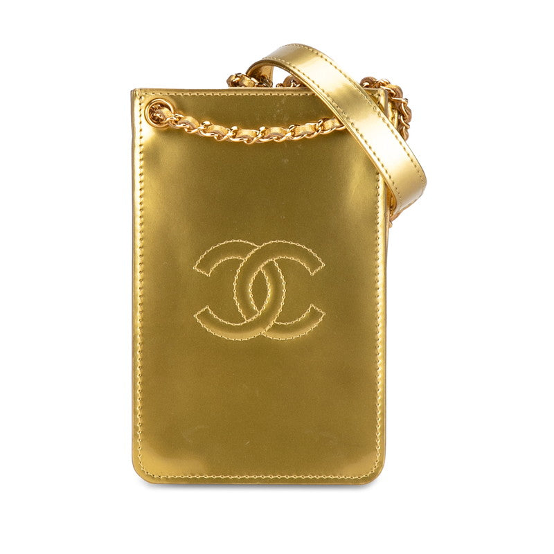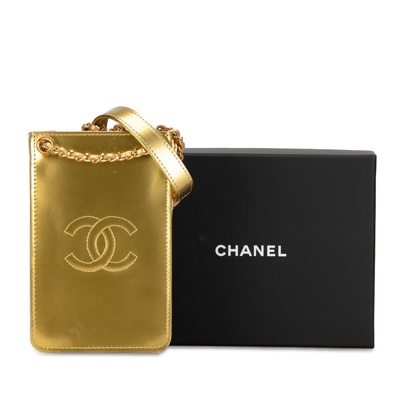 シャネル ココマーク チェーン 斜め掛け ショルダーバッグ フォンホルダー ポーチ ゴールド パテントレザー レディース CHANEL 【中古】