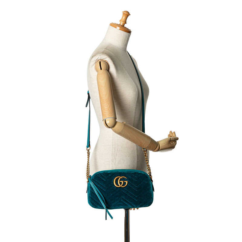 グッチ GGマーモント 斜め掛け チェーン ショルダーバッグ 447632 ブルー ベロア レディース GUCCI 【中古】