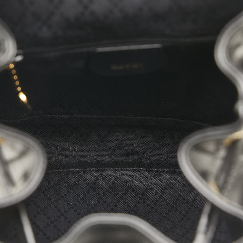 外側⇒型崩れ・スレ・キズ・巾着紐にスレ サイド⇒スレ・キズ 底面⇒スレ ハンドル⇒ひび割れ ショルダー⇒ヨレ・金具跡・ひび割れ 金具⇒キズ フラップ⇒キズ・薄汚れ 開閉口⇒スレ 内側⇒生地浮き |