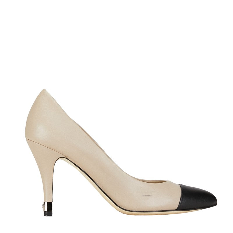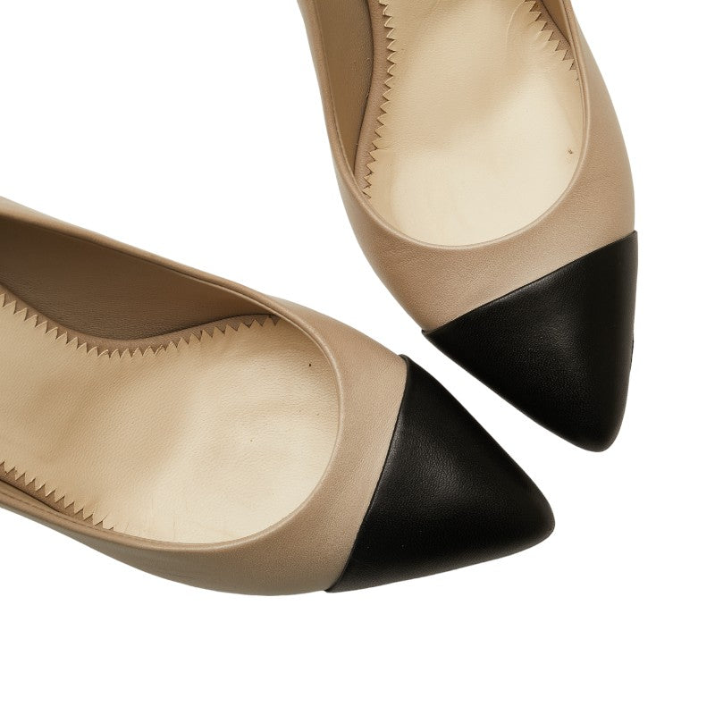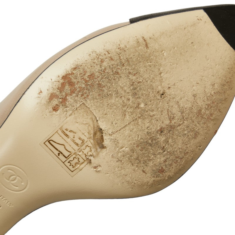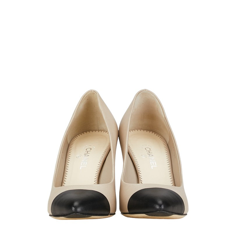 シャネル ココマーク パンプス ベージュ ブラック レザー レディース CHANEL 【中古】