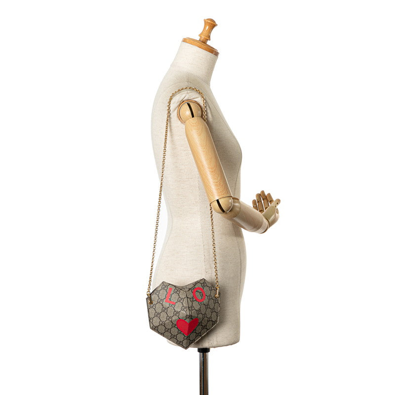 グッチ GGスプリーム スモールハート LOVE チェーン ショルダーバッグ 678131 ベージュ レッド PVC レザー レディース GUCCI 【中古】