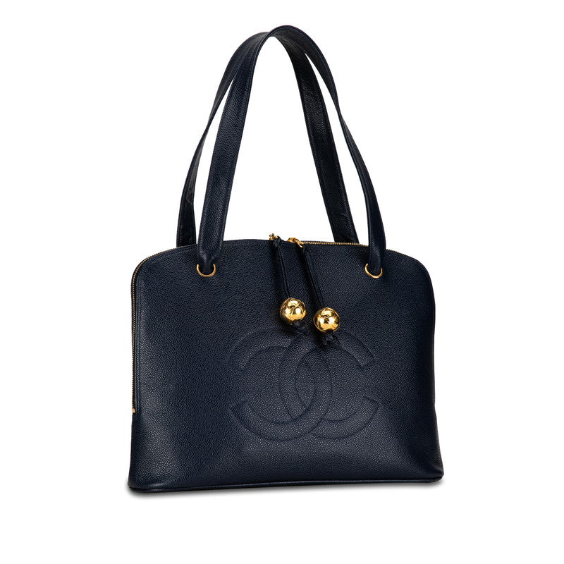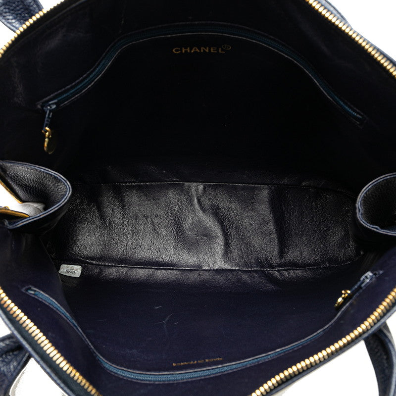 シャネル デカココマーク トートバッグ ネイビー キャビアスキン レディース CHANEL 【中古】