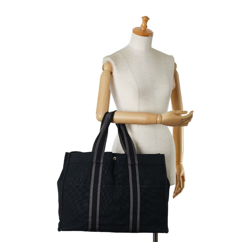 エルメス フールトゥGM ハンドバッグ トートバッグ ブラック キャンバス レディース HERMES 【中古】