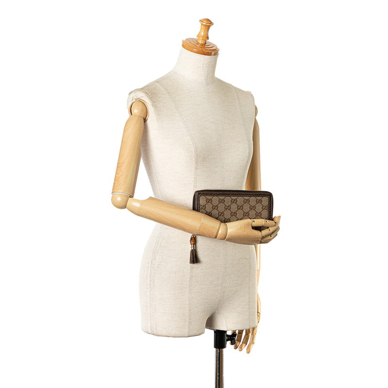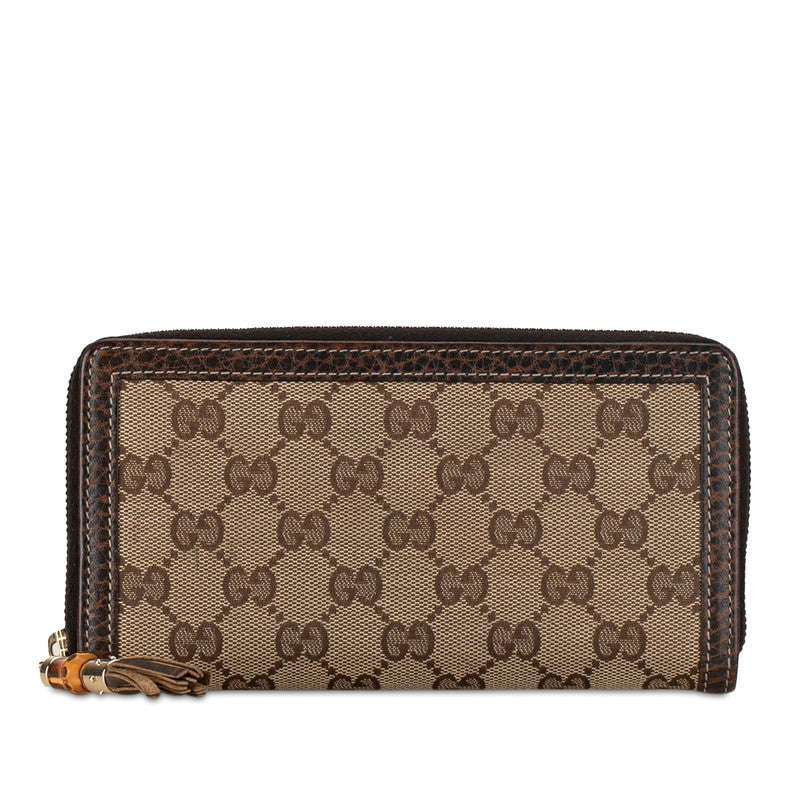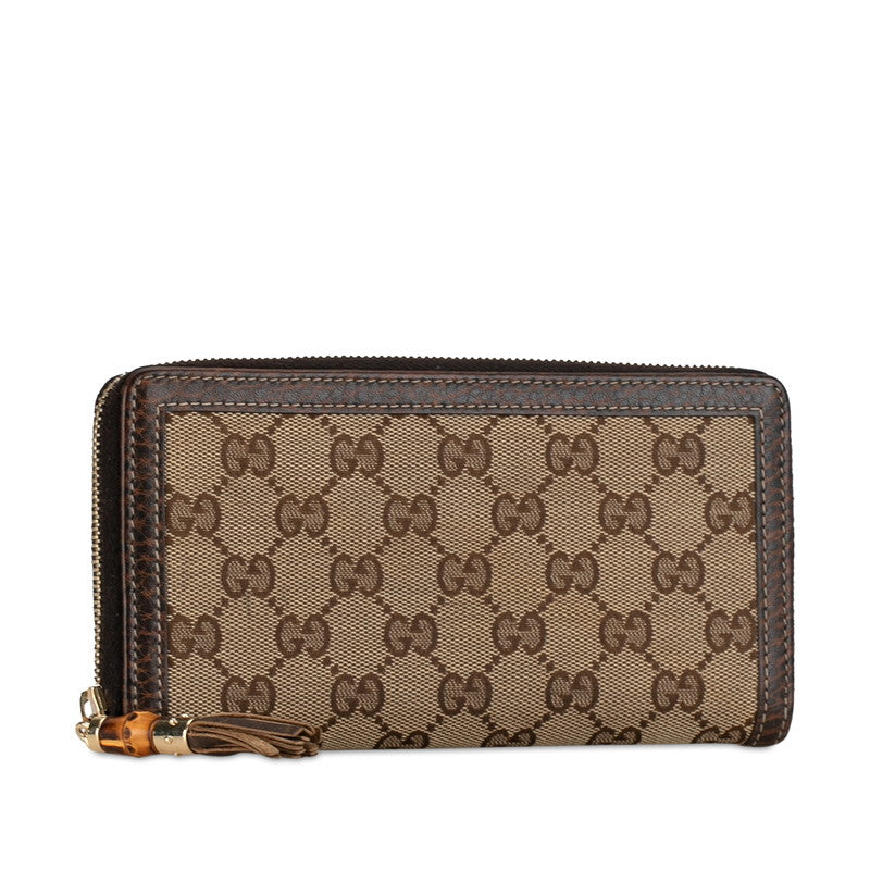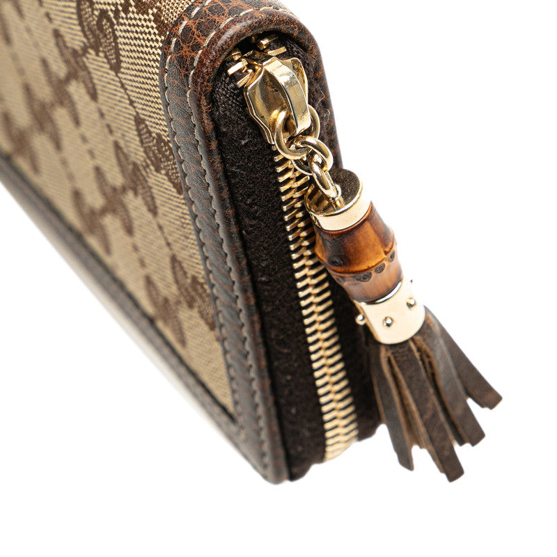 グッチ GGキャンバス バンブー タッセル ラウンドファスナー 長財布 224253 ブラウン ベージュ キャンバス レザー レディース GUCCI 【中古】