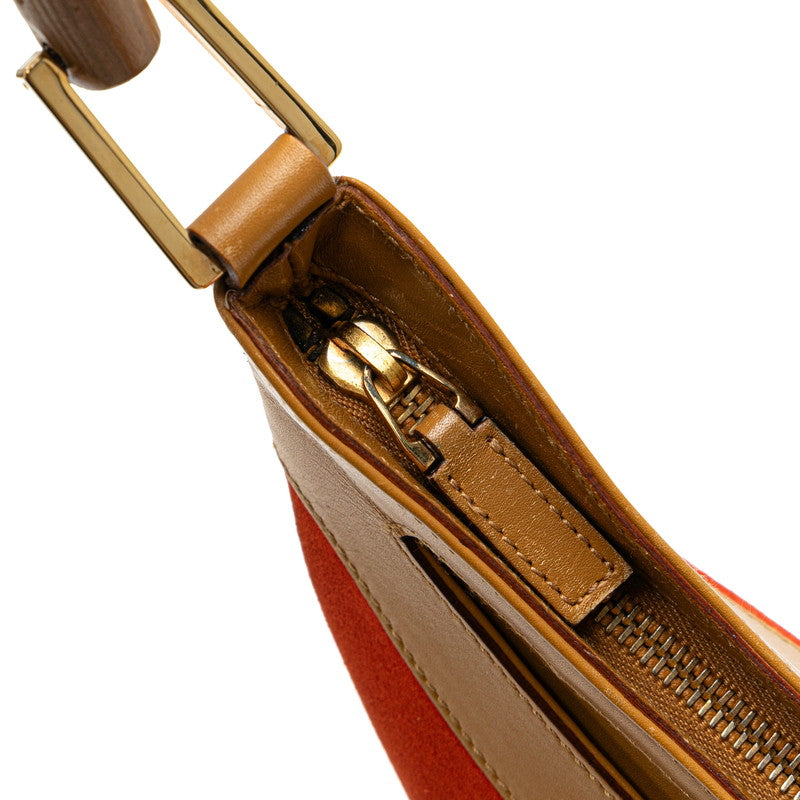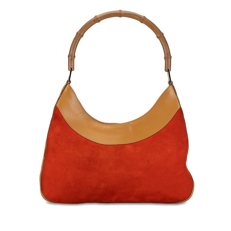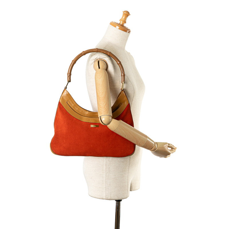 グッチ バンブー ワンショルダーバッグ ハンドバッグ 001 4062 オレンジ ブラウン スウェード レザー レディース GUCCI 【中古】